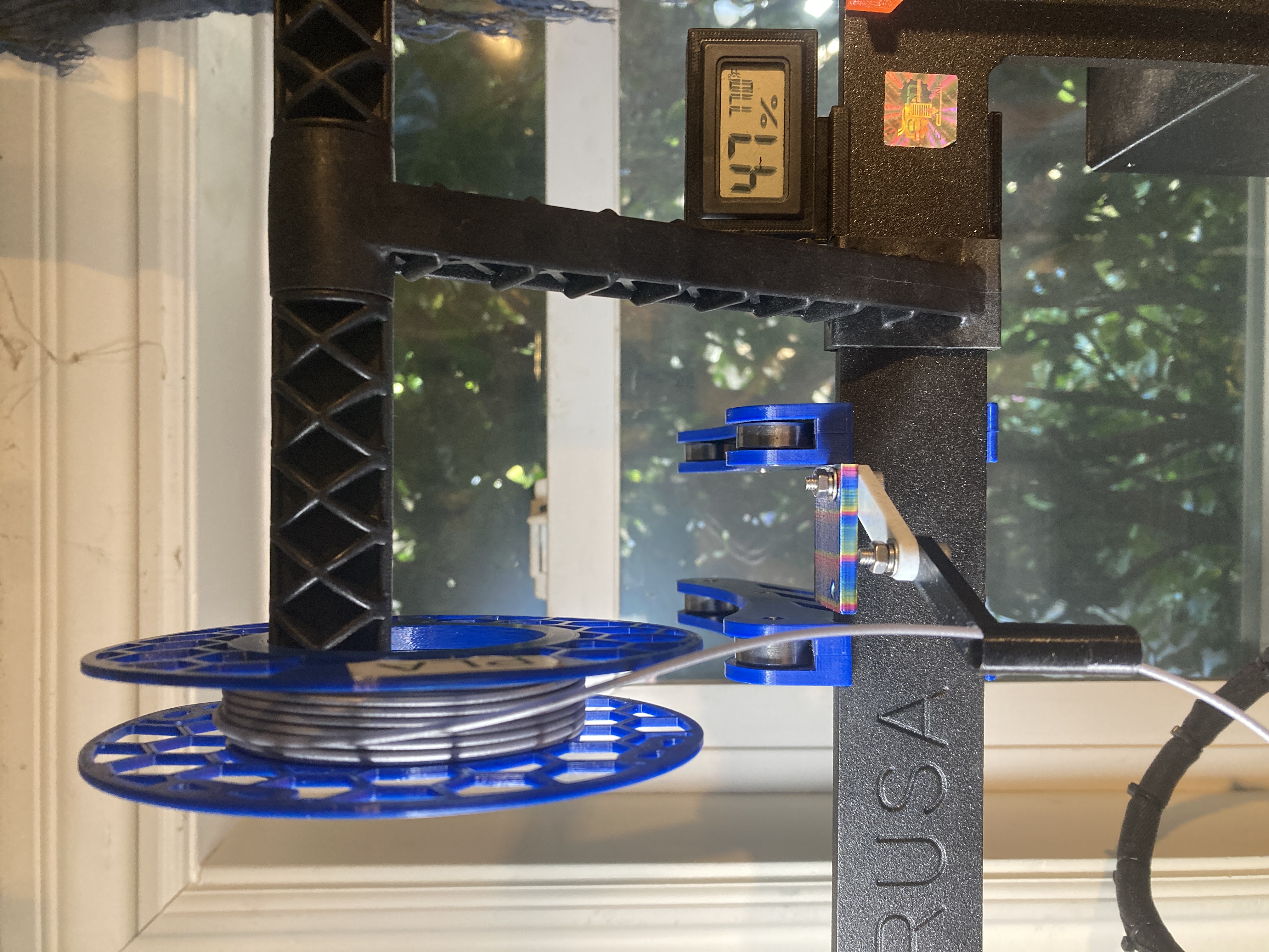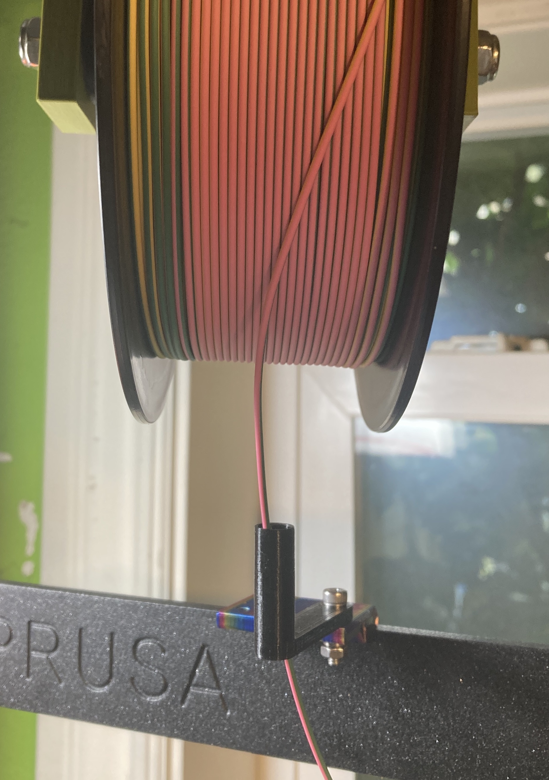 Điều này cũng giải quyết một vấn đề với các cuộn dây nhỏ. Tôi thường dùng các cuộn 100g để chứa phần dây tóc còn lại trên cuộn lớn hơn, để tiết kiệm không gian. Nhưng chúng quá nhỏ và nhẹ so với độ cứng của dây tóc nên chúng có thể bị bung ra trong quá trình in, ngày càng nhiều, cho đến khi có một cuộn dây tóc quấn quanh bộ đùn. Ống này ngăn chặn điều đó xảy ra miễn là nó đủ gần với cuộn dây nhỏ.