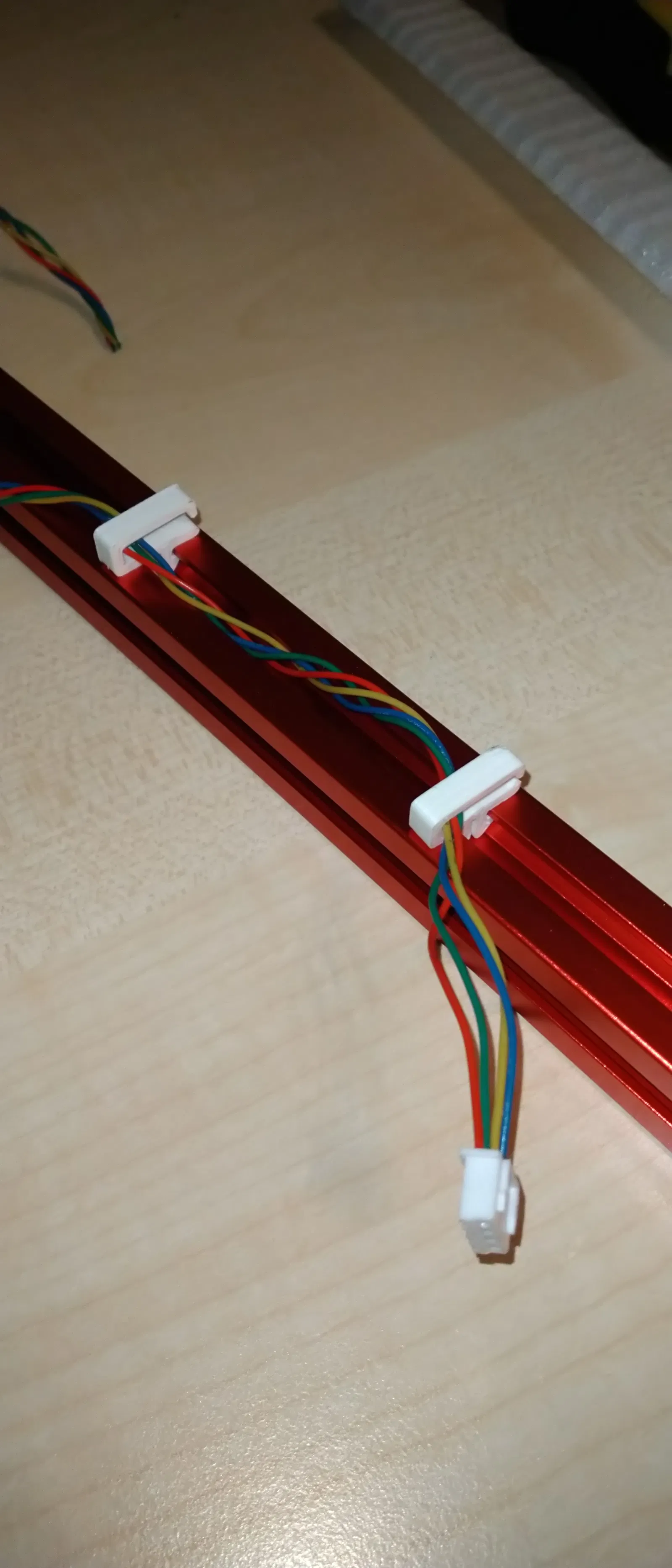 Gắn mấy cái kẹp này vô bằng cách xoay nó ở trong rãnh của thanh nhôm nha.