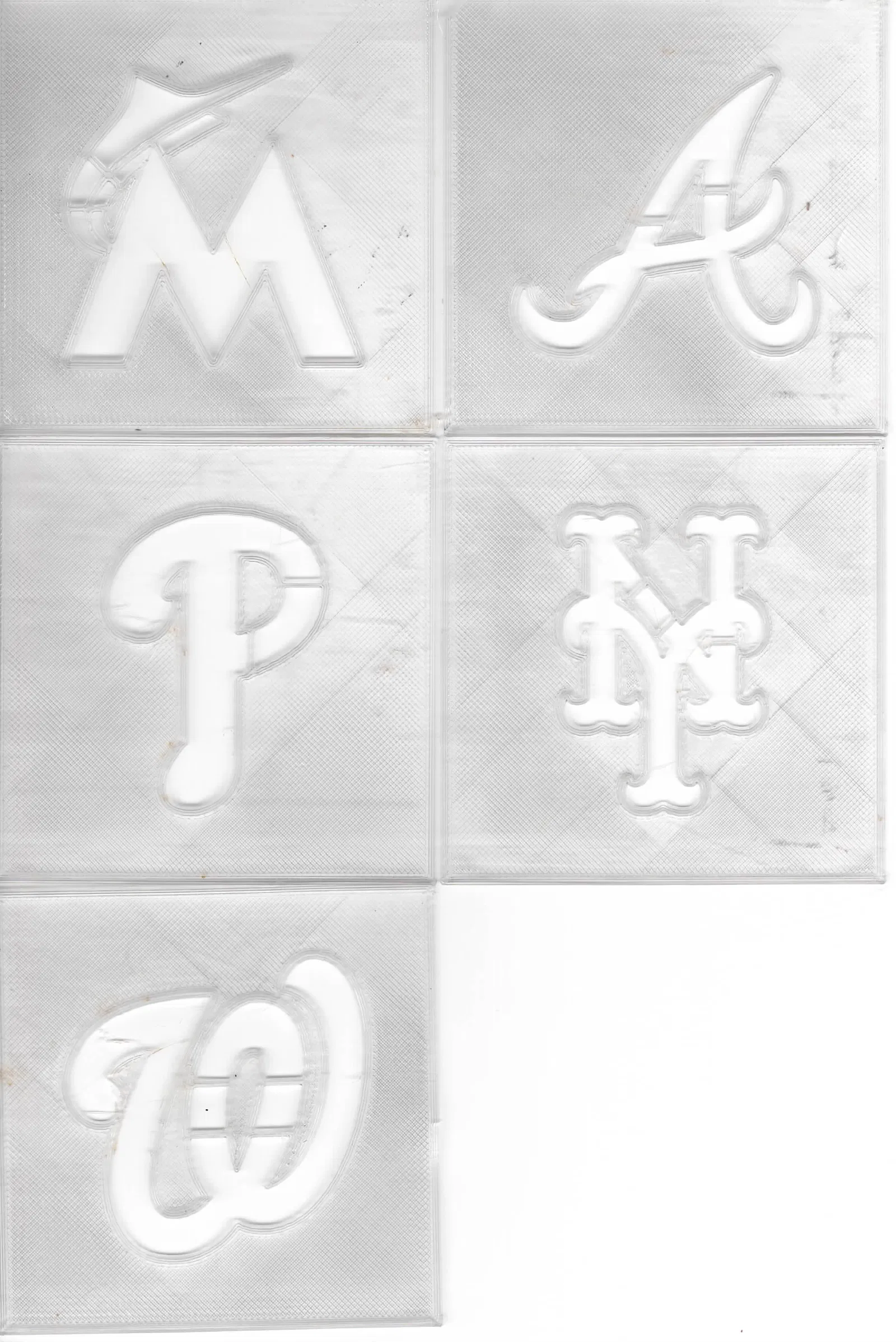 Một bộ stencil logo cho mỗi đội MLB. Những stencil này được tạo ra để làm 30 bức tranh nhỏ, sau này sẽ trở thành một tác phẩm nghệ thuật chức năng đóng vai trò là bảng xếp hạng trong mỗi mùa giải MLB thông thường.