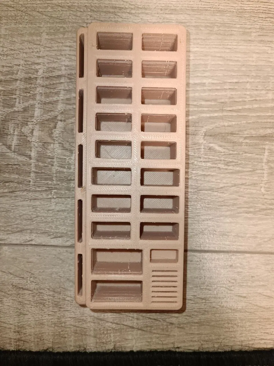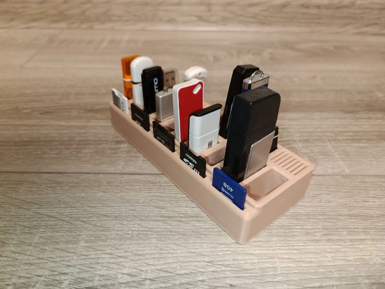 Hộp đựng USB này có nhiều kích cỡ khe khác nhau, bao gồm 10 khe 10x20 mm, 6 khe 10x22 mm, 1 khe 15x29 mm, 1 khe 13x29 mm, 7 khe 1x15mm và 5 khe 3x25mm. Rất tiện lợi để sắp xếp các loại USB khác nhau nha!