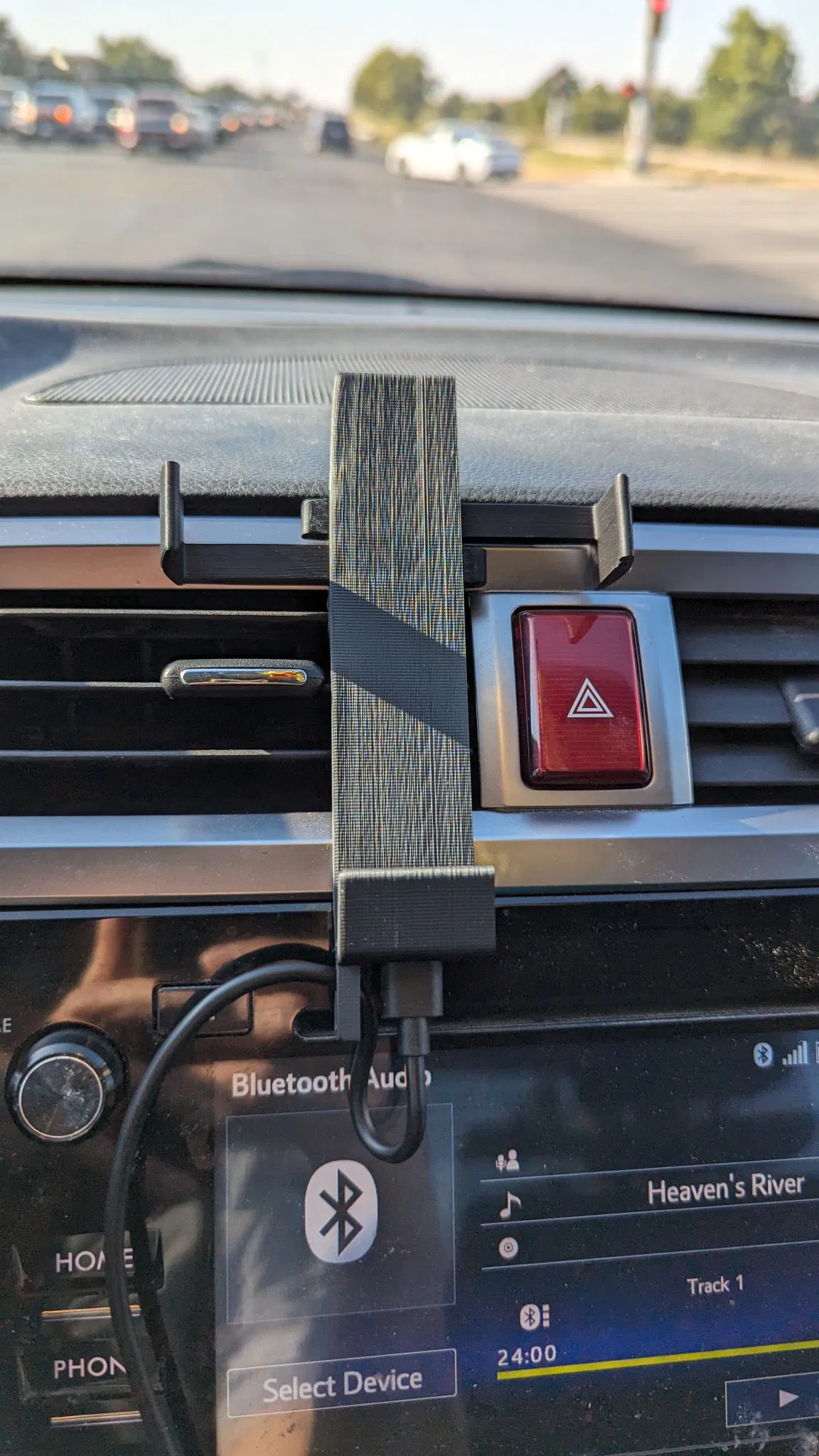 Đã remix thiết kế xuất sắc để có một khe cắm cáp sạc, cũng giúp giữ điện thoại ở vị trí. Cũng đã thêm một kẹp chặt hơn.