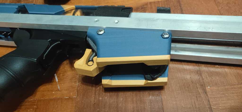 Vì mặt dưới phẳng và có gân, bạn cũng có thể in với thay đổi filament để tạo điểm nhấn cho blaster của mình.