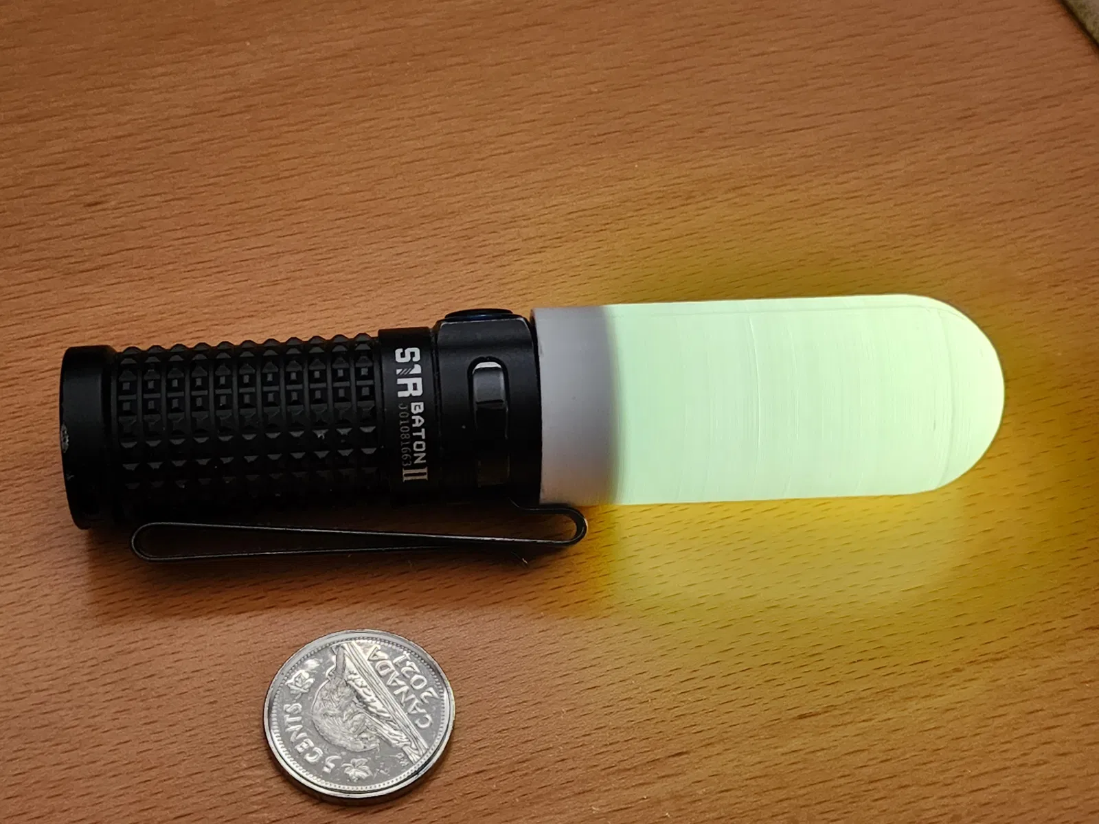 Đây là một cái chụp đèn khuếch tán ánh sáng tiện lợi, xài vừa cho đèn pin OLight Baton II hoặc Baton 3.