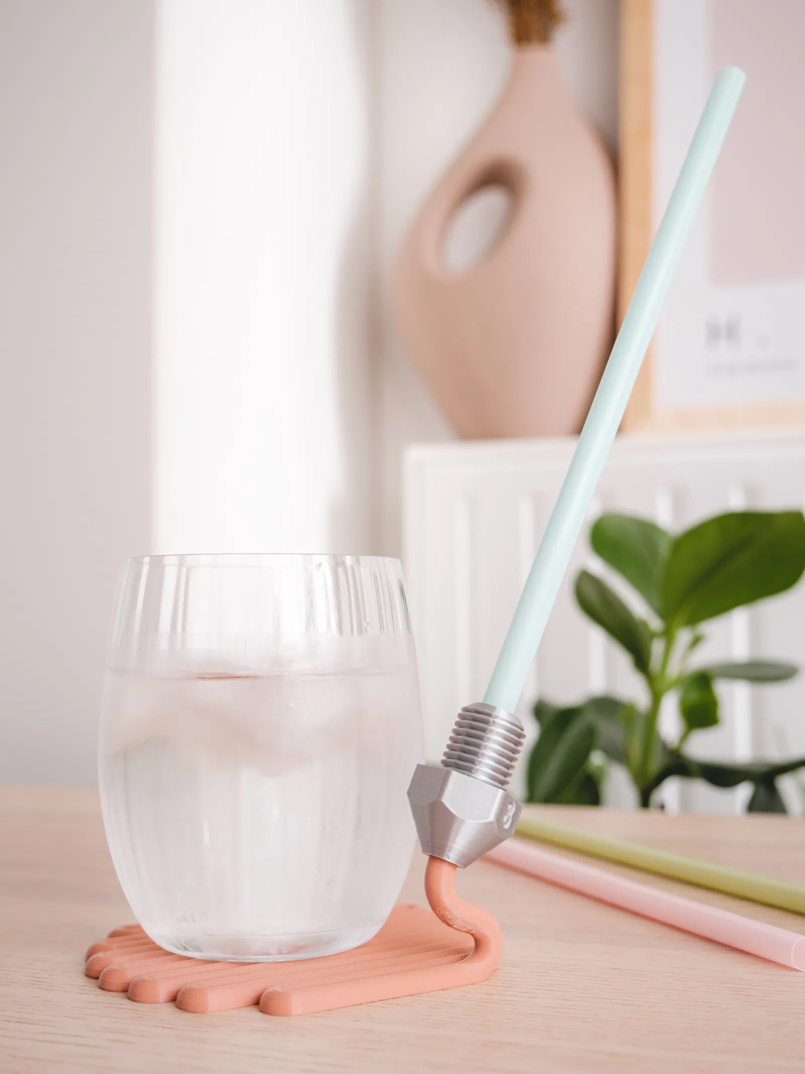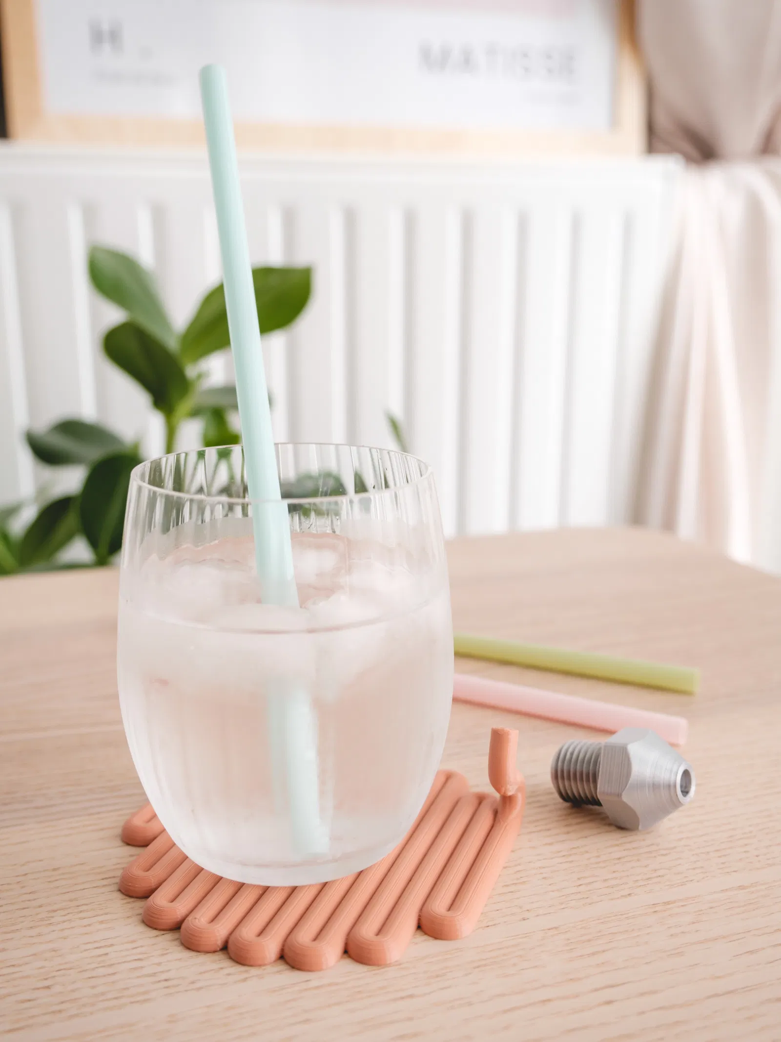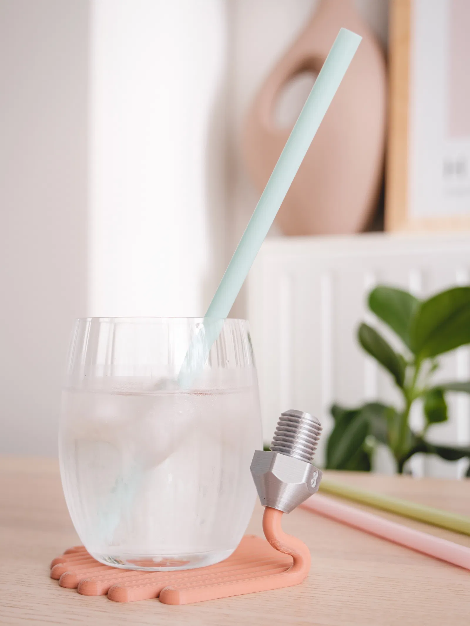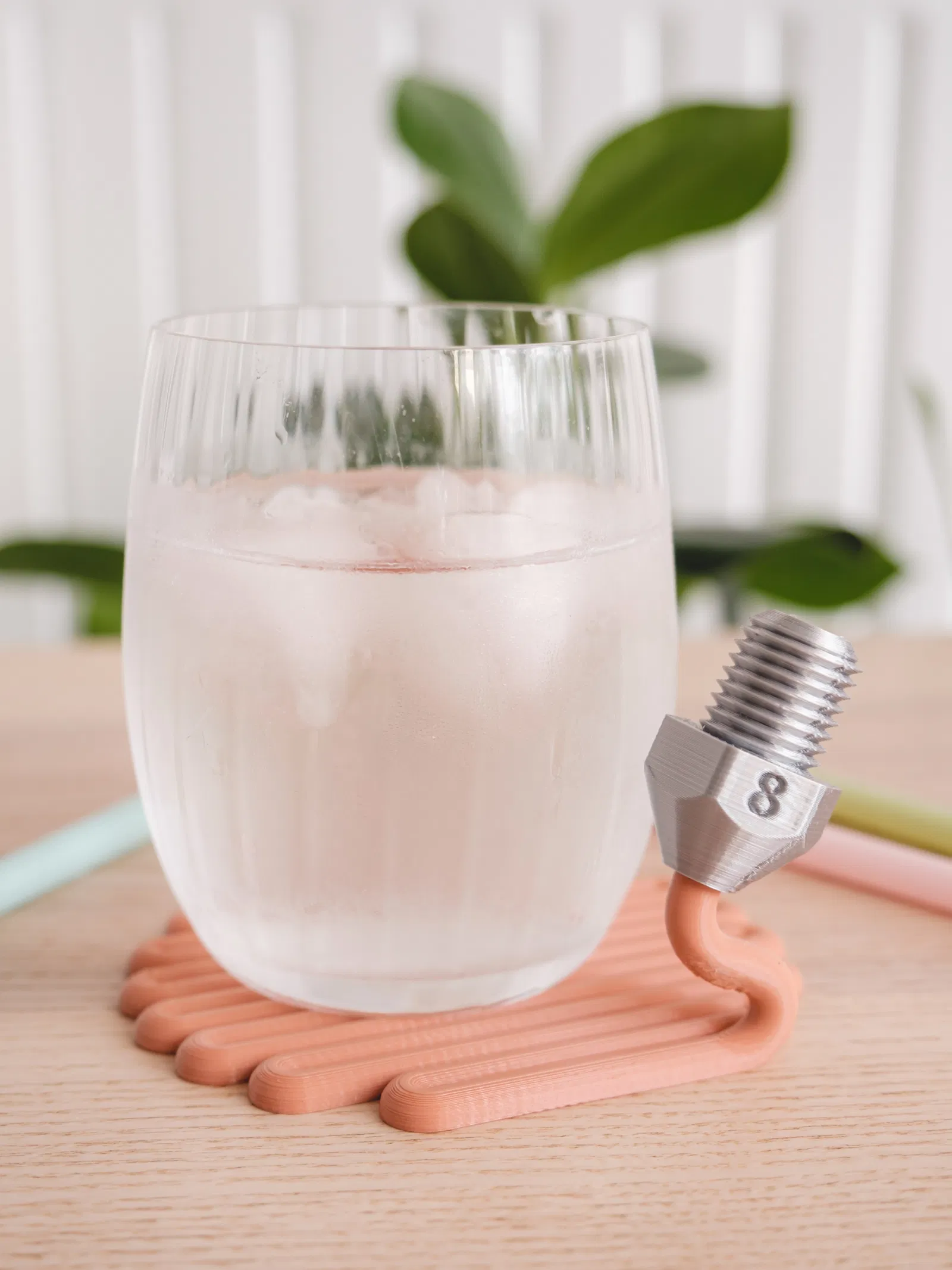 Cái đế lót ly độc đáo này mô phỏng một cái đầu phun 3D đang kéo sợi nhựa, vừa bảo vệ bàn lại vừa là món đồ trang trí hay ho. Đường kính 105mm, in không cần support, dán keo 502 là dính. Có chỗ gác ống hút tiện lợi. Thích hợp cho dân mê in 3D!