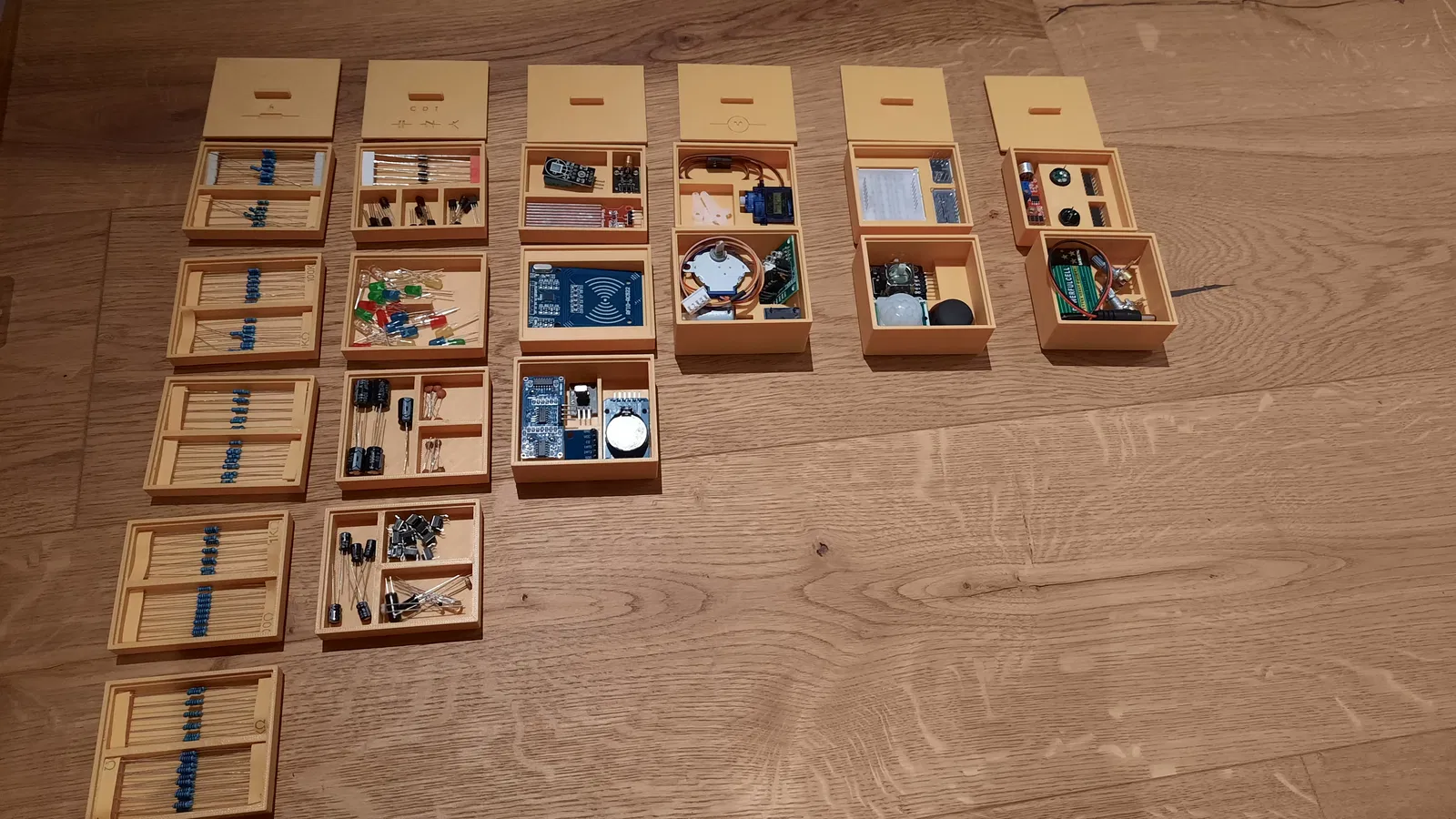 Hệ thống Sắp xếp tinh xảo cho bộ khởi động Arduino Mizuei MA17. Hầu hết mọi bộ phận của bộ kit đều có vị trí trong hệ thống sắp xếp này.