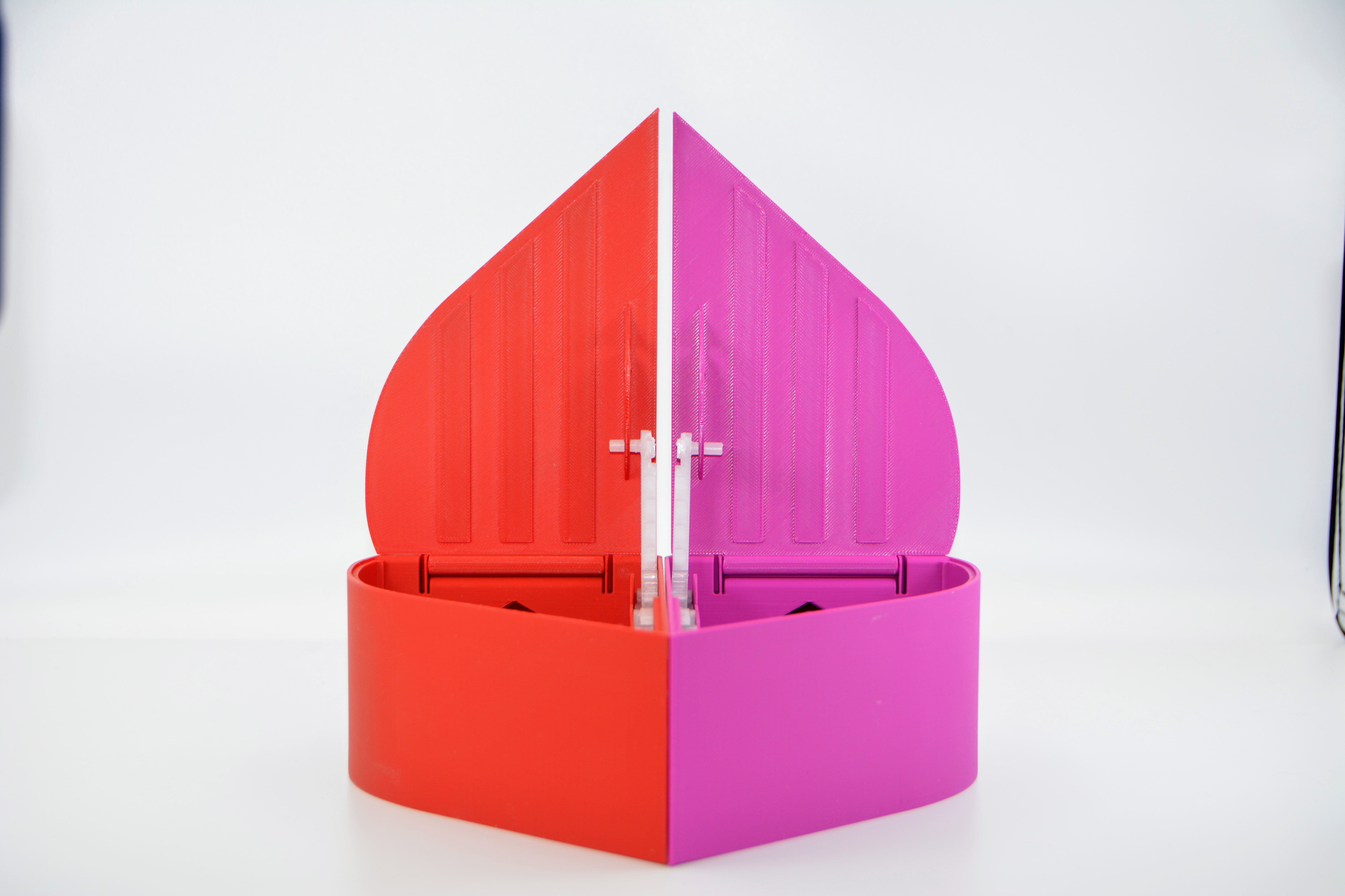 Chiếc hộp hình trái tim độc đáo này mở ra bằng cơ chế lò xo khóa, là món quà hoàn hảo cho Lễ Tình Nhân. Dễ dàng lắp ráp với hướng dẫn chi tiết và cài đặt in khuyến nghị cho PLA và PETG.