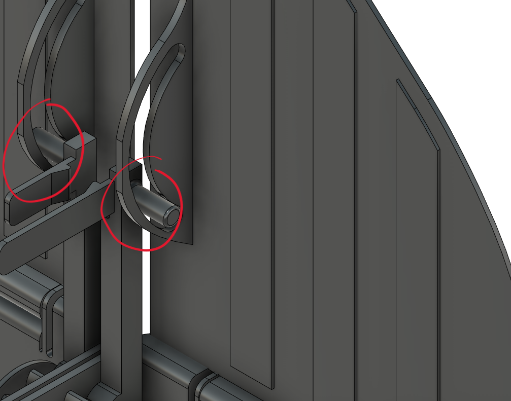 Mỗi ngăn đều có lò xo và nắp riêng (lò xo được đánh dấu L hoặc R như bạn thấy trên hình). Việc lắp lò xo vào hộp có thể hơi khó khăn do dung sai hẹp. Ngăn chứa lò xo có một gờ và một chốt nhỏ để giữ lò xo cố định (đã thêm hình ảnh để minh họa chốt và gờ này). Khi lắp lò xo, bạn cần kéo nhẹ thành hộp tương ứng sang một bên để tạo thêm không gian (đã thêm hình ảnh minh họa thành cần kéo). Sau khi lắp lò xo xong, bạn có thể gắn nắp và đặt chốt lò xo vào rãnh dẫn hướng của nắp.