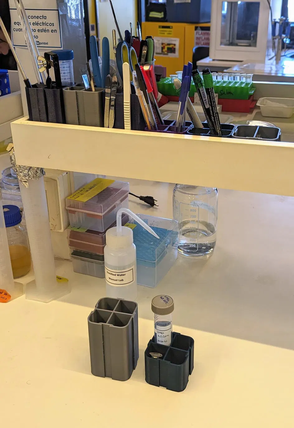 Kệ bút và dụng cụ dạng module, có thể kết nối với nhau cho phòng thí nghiệm và văn phòng - được thiết kế bởi Huynh đệ Công nghệ Thiết kế của chúng tôi, Matías Hurtado Labarca, như một phần của dự án LIBRE hub