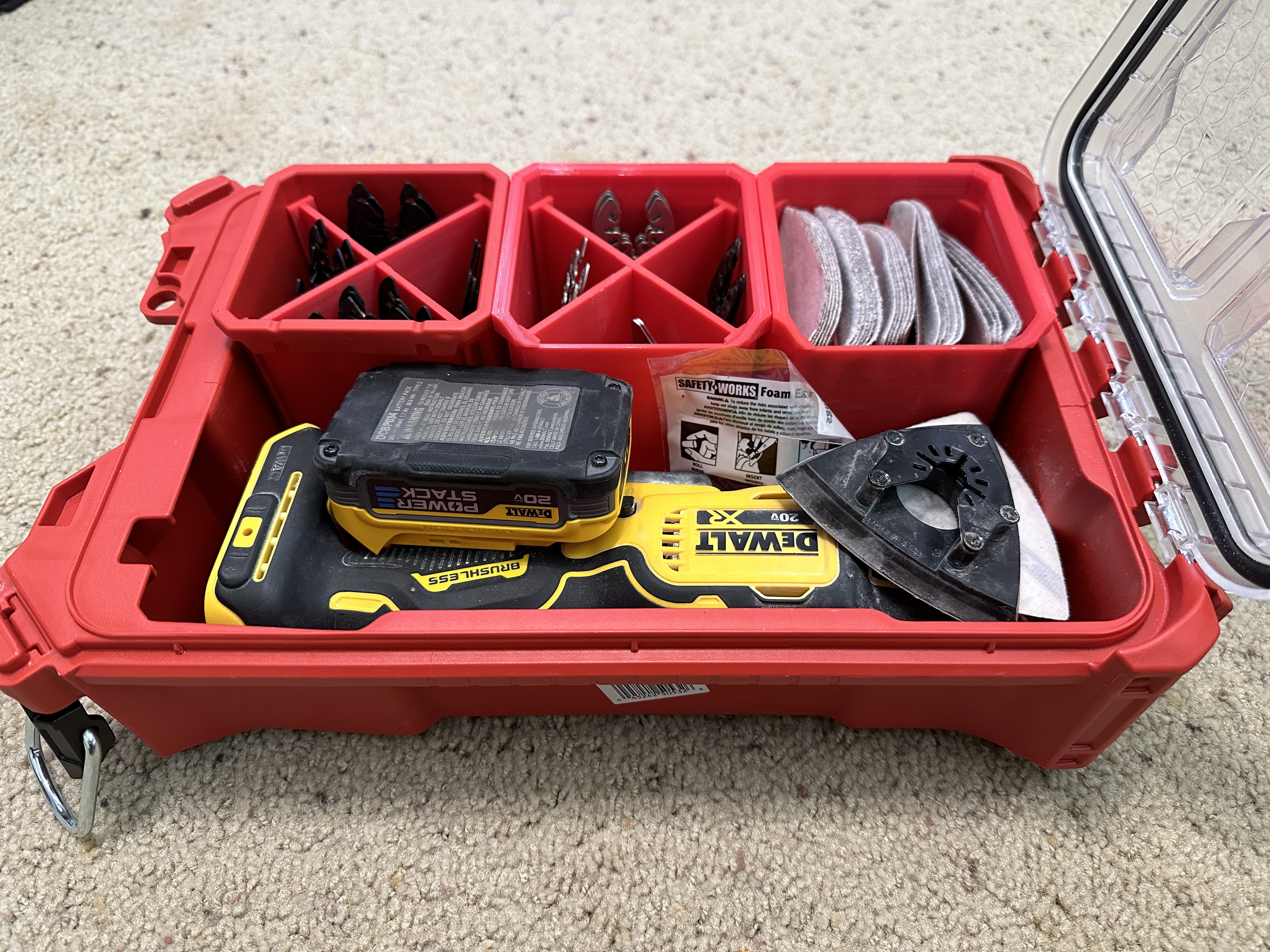Mô hình được chỉnh sửa lại để thêm các góc bên trong và chỗ lõm dưới đáy, cùng với việc tạo ra các vách ngăn cho vừa vặn. Phù hợp cho việc sắp xếp linh kiện, phụ tùng trong quá trình in 3D.