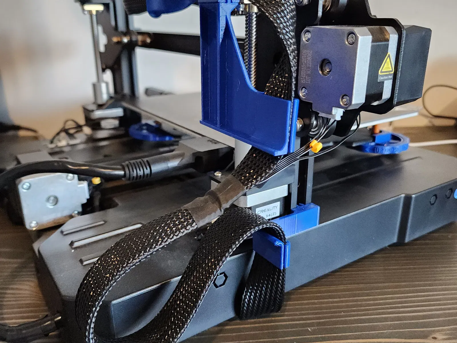 Hoàn thành hệ thống hỗ trợ cáp Ribbon cho Ender 3 S1 Pro, hướng cáp từ máy đùn đến đế.