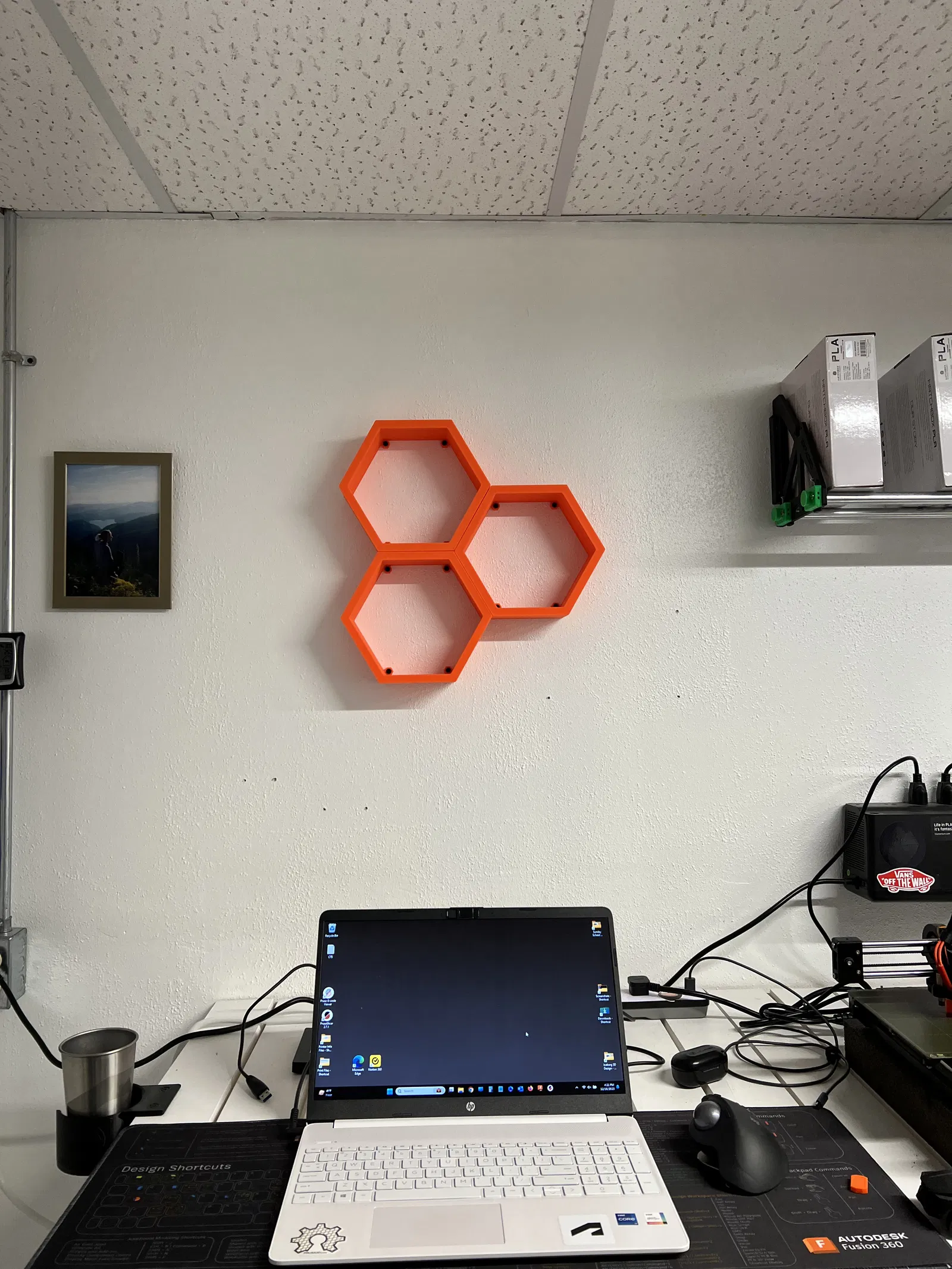 Trang trí lục giác "chất" dễ dàng lắp đặt trên kệ hoặc treo tường, làm bằng PLA với đầu phun 0.8 cho chi tiết sắc nét.