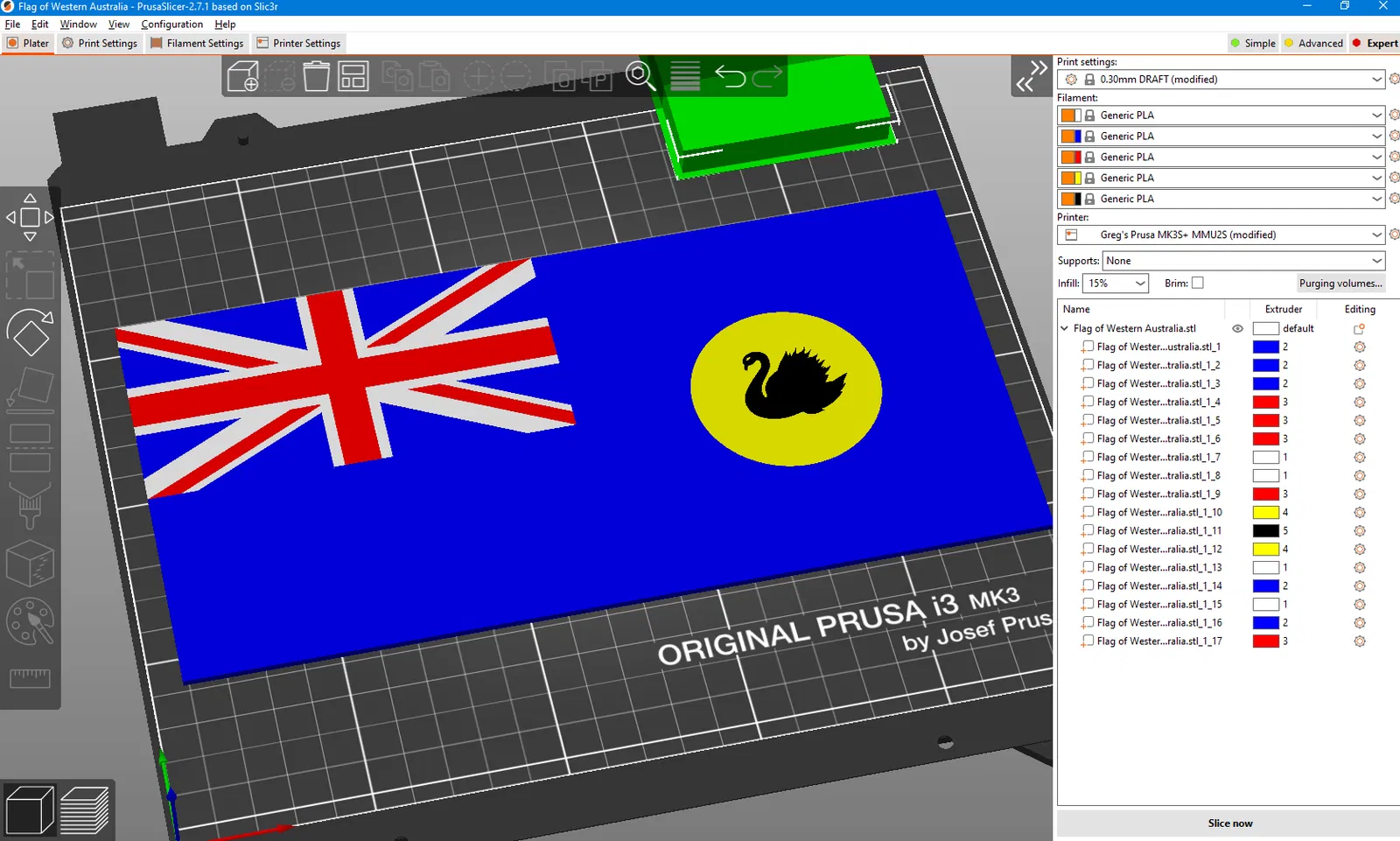 Mô hình lá cờ Tây Úc gồm nhiều bộ phận, hỗ trợ in đa màu với MMU, AMS, XL. Sử dụng chức năng tách bộ phận trong PrusaSlicer hoặc file 3mf có sẵn. Tùy chỉnh kích thước và in ngay!