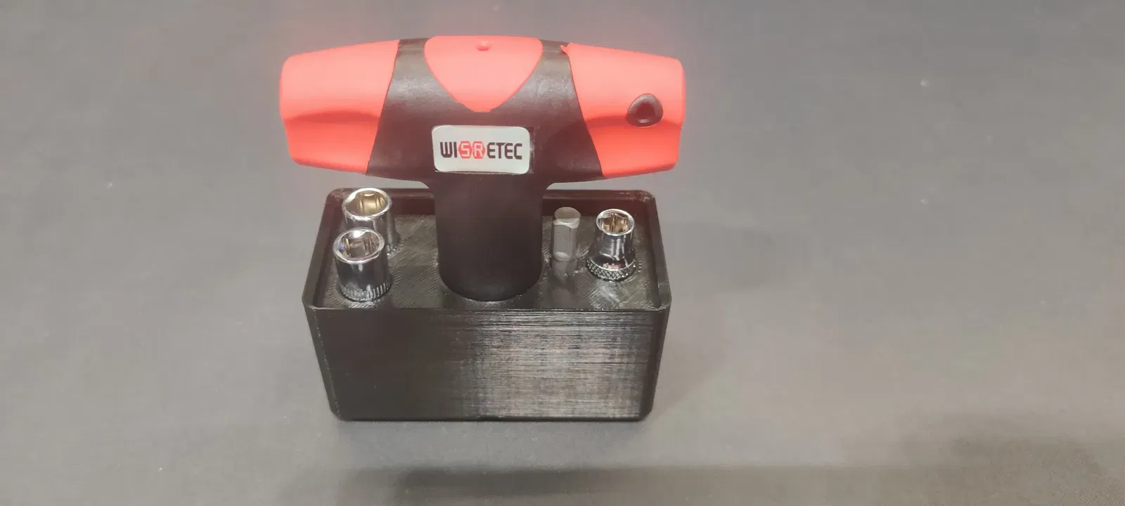 Tùy chỉnh lại đế giữ cờ lê lực siết đầu phun Gridfinity cho bộ sản phẩm của TriangleLabs. Hộp đựng này có chỗ cho 3 đầu tuýp, giúp bạn cất giữ cờ lê lực một cách gọn gàng. In bằng PETG hoặc PLA với cài đặt tiêu chuẩn.