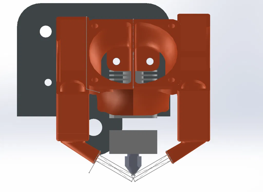 Cải tiến khuôn gió quạt kép Ender 3 eB, thêm quạt làm mát hai bên cho hiệu quả hơn. Thiết kế gọn gàng, không cần support, dễ dàng lắp đặt.