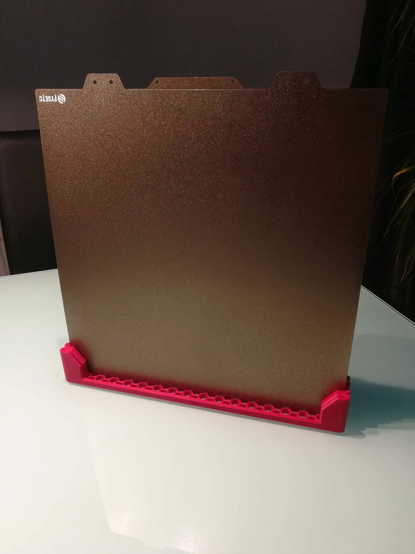 Thiết kế lại từ thiết kế tuyệt vời của SLcompany để phù hợp với các tấm thép của Voron 2.4 hoặc Voron Trident với các kích cỡ 250 mm, 300 mm hoặc 350 mm. Giá đỡ có thể chứa 4 tấm thép.