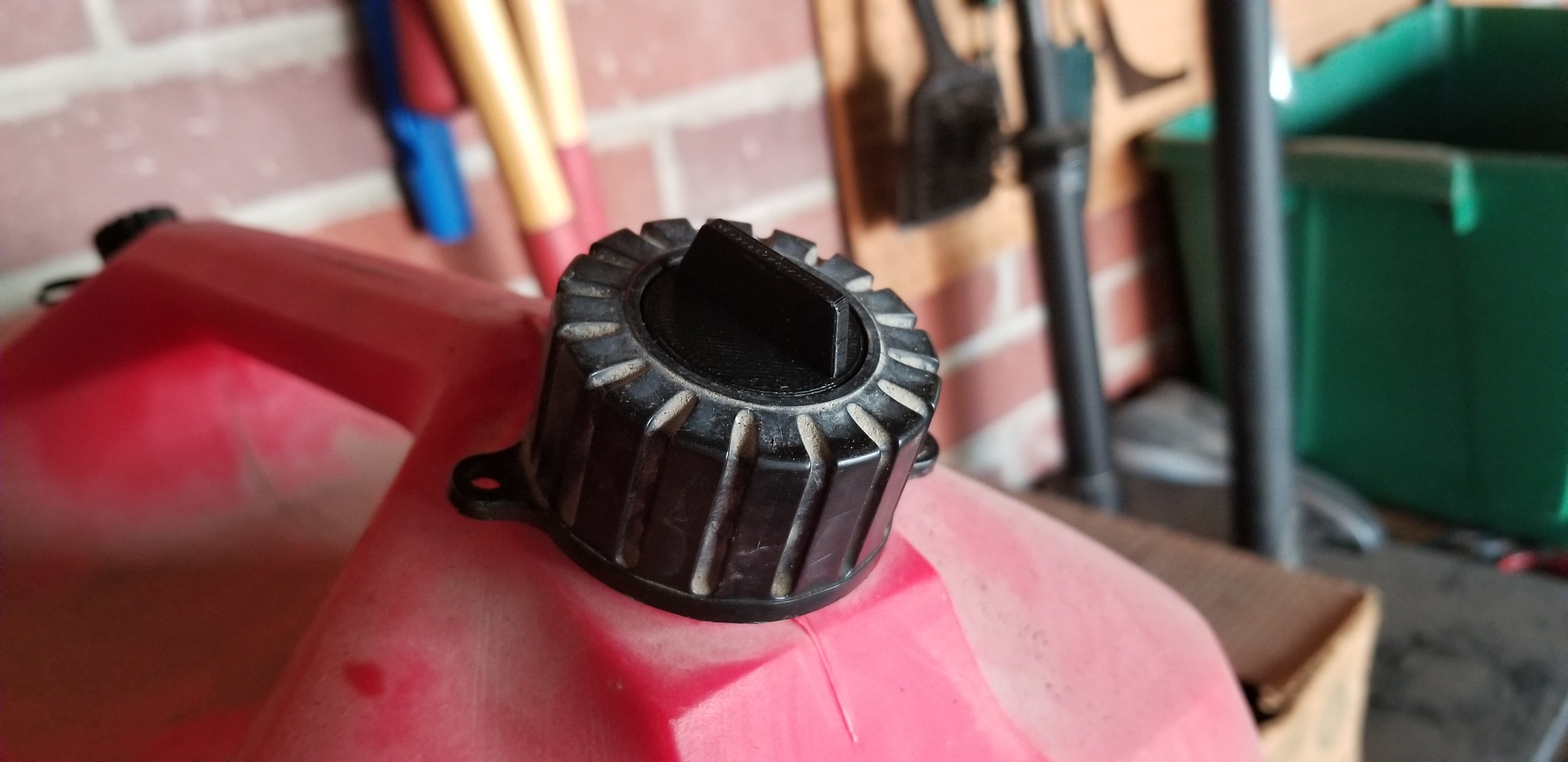 Nắp vòi thay thế cho bình xăng Rubbermaid. Mẫu này cứng cáp hơn, dễ in, và thay thế tốt cho nắp zin đã mất hoặc hư hỏng. Khuyến khích dùng PETG để có độ bền tốt nhất.