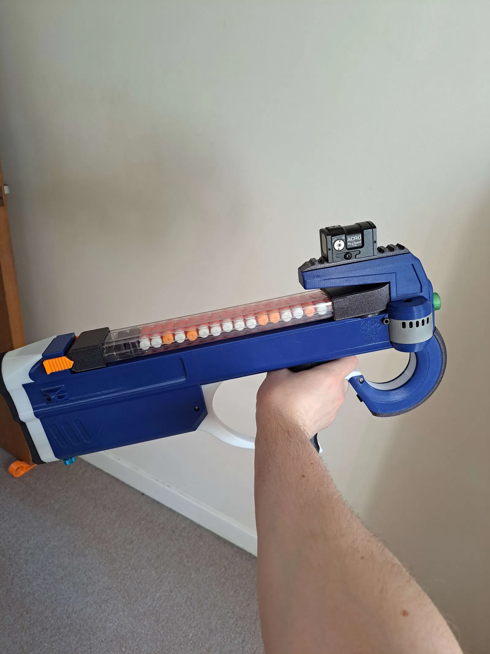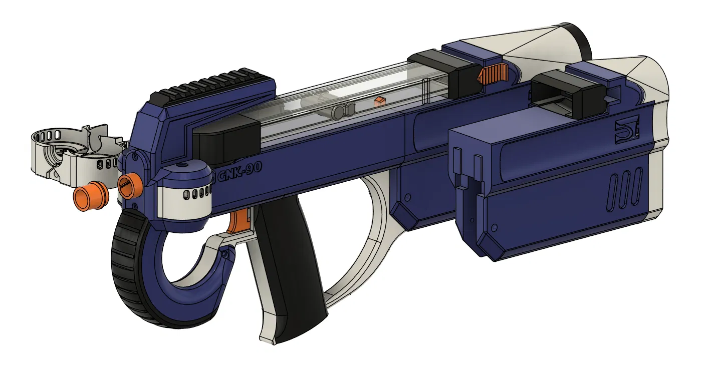 GnK-90: Súng Nerf Nạp Đạn Từ Trên, Chạy Bằng Solenoid, Động Cơ Không Chổi Than