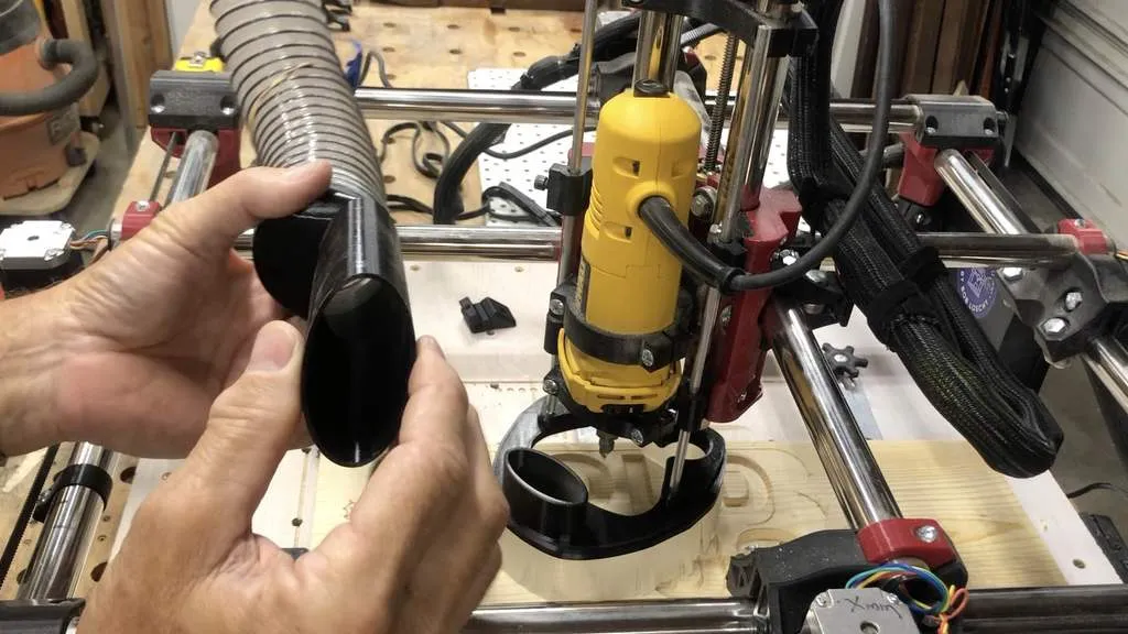 Tôi đang chia sẻ phiên bản của mình về một bộ gắn thu bụi cho MPCNC Primo. Tôi đã thử một vài thiết kế khác nhau được cung cấp và đã tự thiết kế một cái (tất nhiên là có sử dụng ý kiến từ các thiết kế đã được công bố trước đó). Đây được thiết kế để sử dụng với công cụ DEWALT DW660. Nếu bạn đang sử dụng một router khác, có thể cần phải điều chỉnh giá đỡ và giá đỡ chổi để đảm bảo khoảng cách.