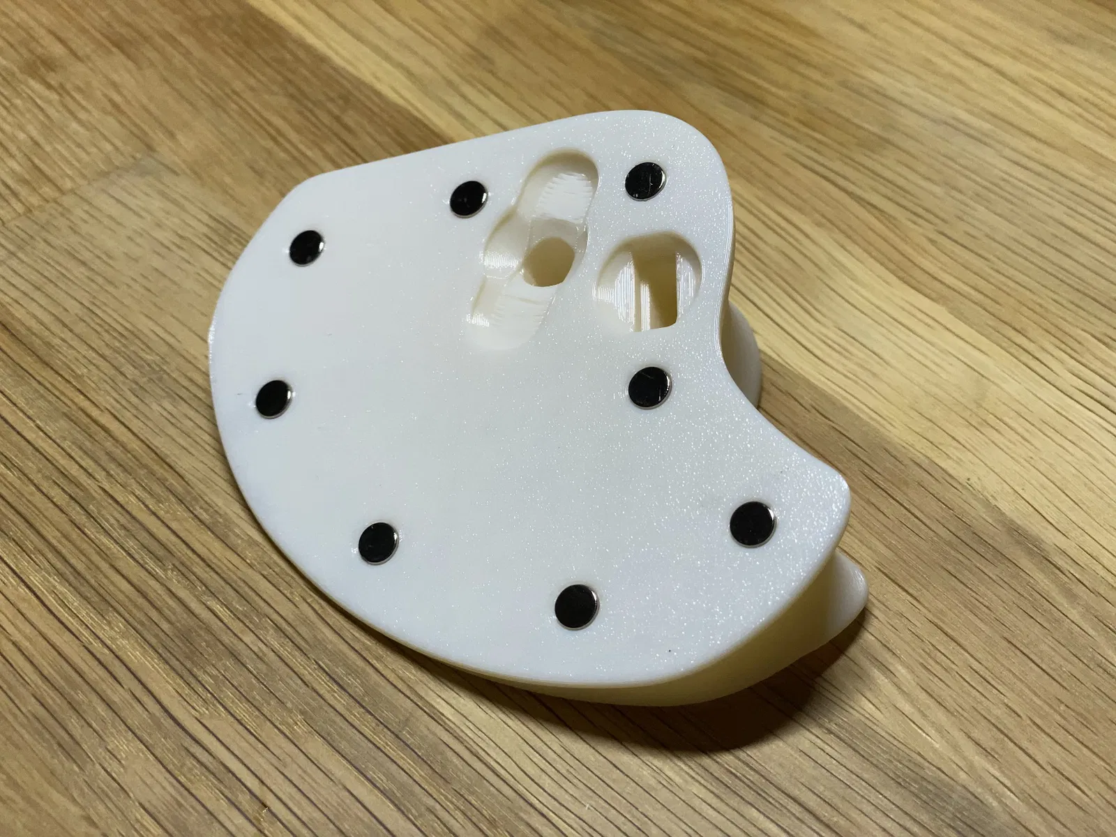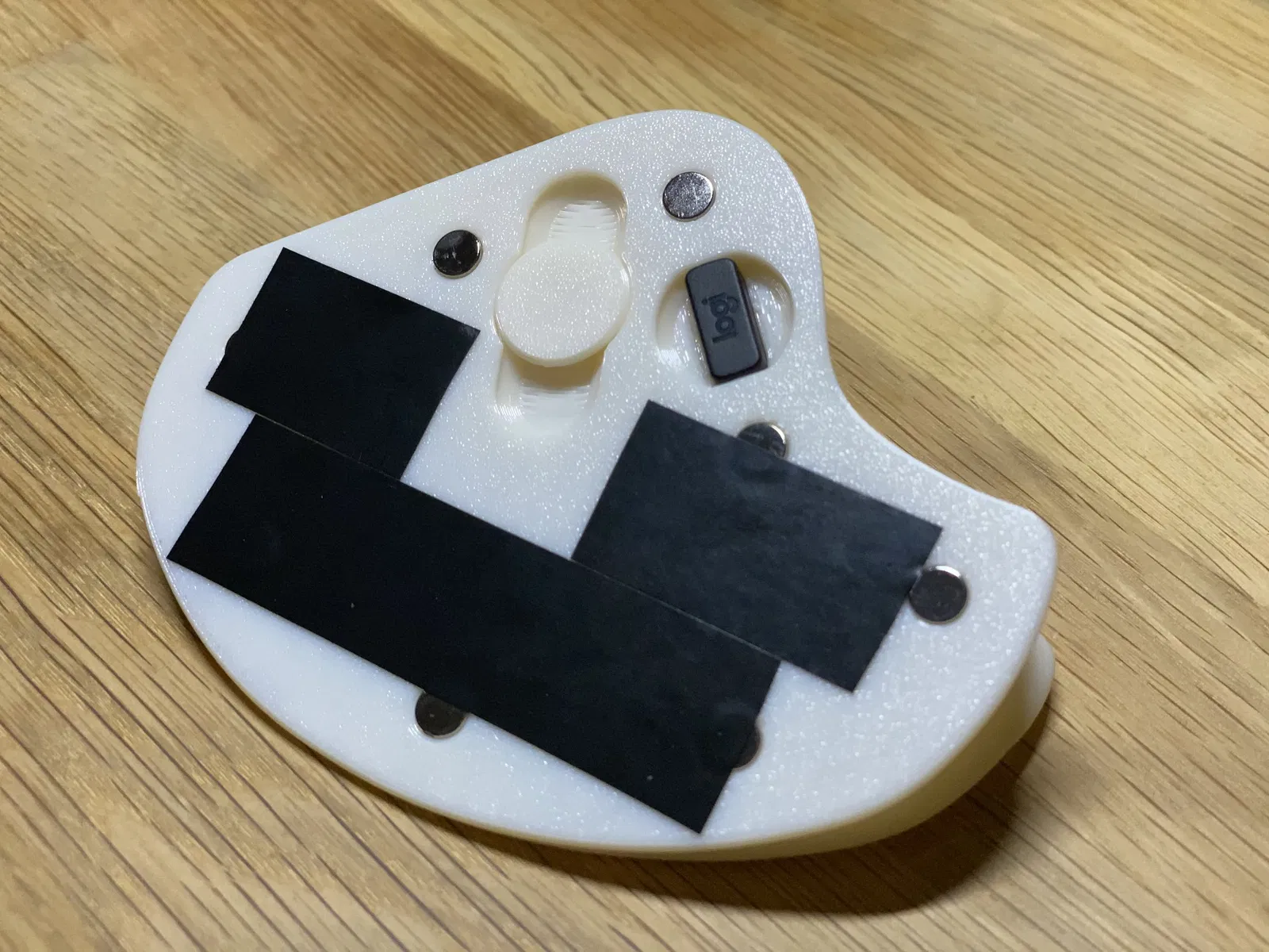 Sử dụng (4) nam châm neodymium 9.5mm x 2.5mm và (8) nam châm 6mm x 3mm để gắn chắc chắn vào cả chuột lẫn đế kim loại đi kèm với chuột. Có thể thêm băng keo điện vào đế để chống trượt trong quá trình sử dụng.