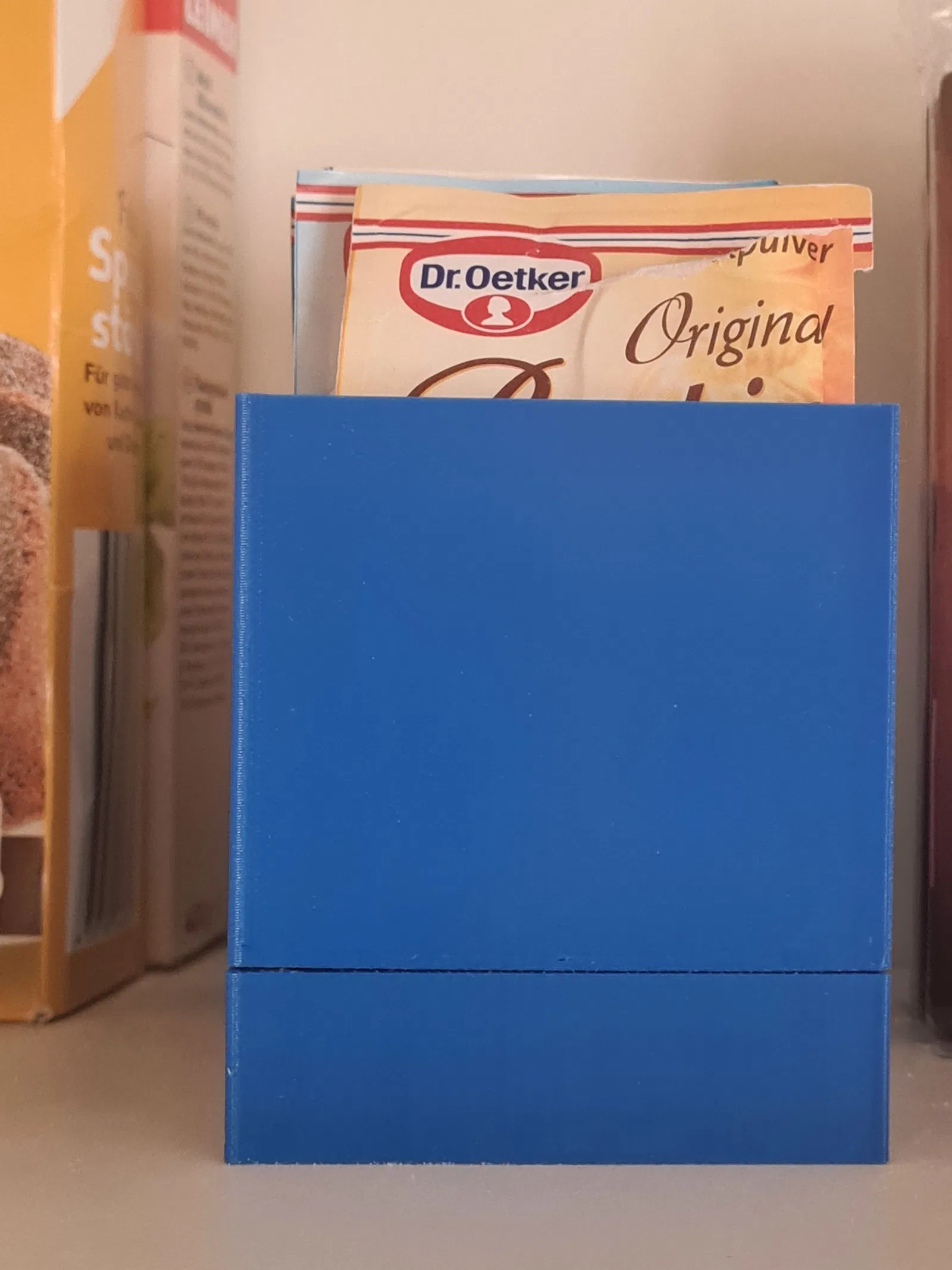 Tui làm cái chỗ để đồ đựng mấy gói bột làm bánh nhỏ nhỏ.