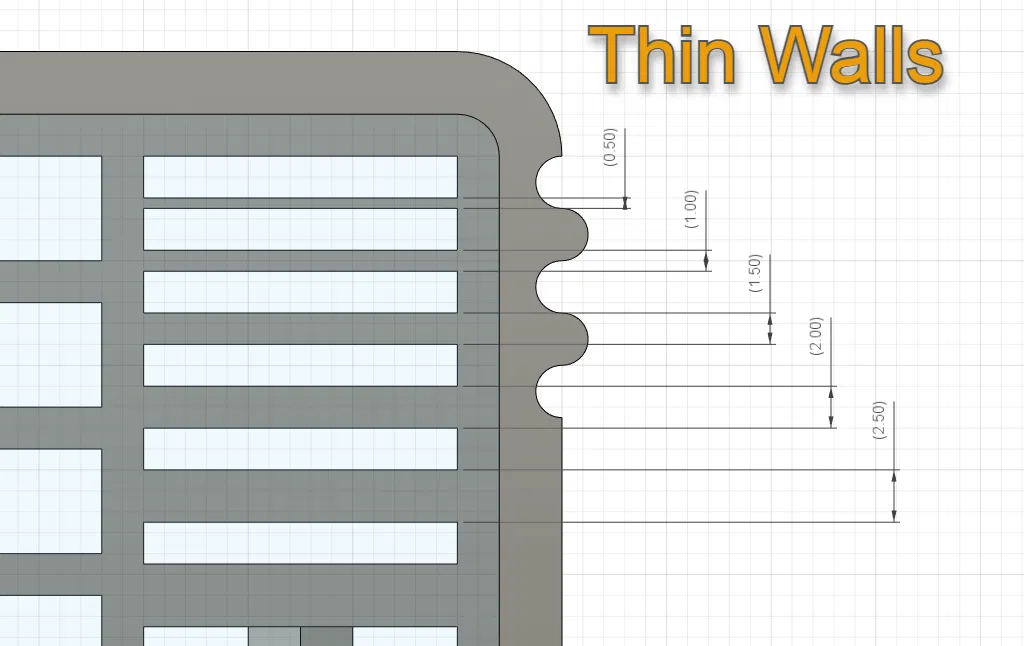 - Tường mỏng (0.5mm, 1mm, 1.5mm, 2mm, 2.5mm)