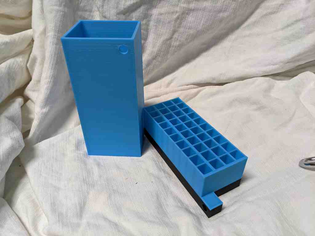 Khi nạp đạn, có một điều mà tôi nhận thấy là tôi không có chỗ để cất giữ những viên đạn đã nạp xong của mình. Tôi thường tái sử dụng các hộp đựng ban đầu mà đạn của nhà máy đi kèm, nhưng theo thời gian, bìa cứng sẽ rã ra và nếu miếng lót giữ đạn không phải bằng nhựa thì nó sẽ không bền. Tôi quyết định đã đến lúc phải in 3D một cái.