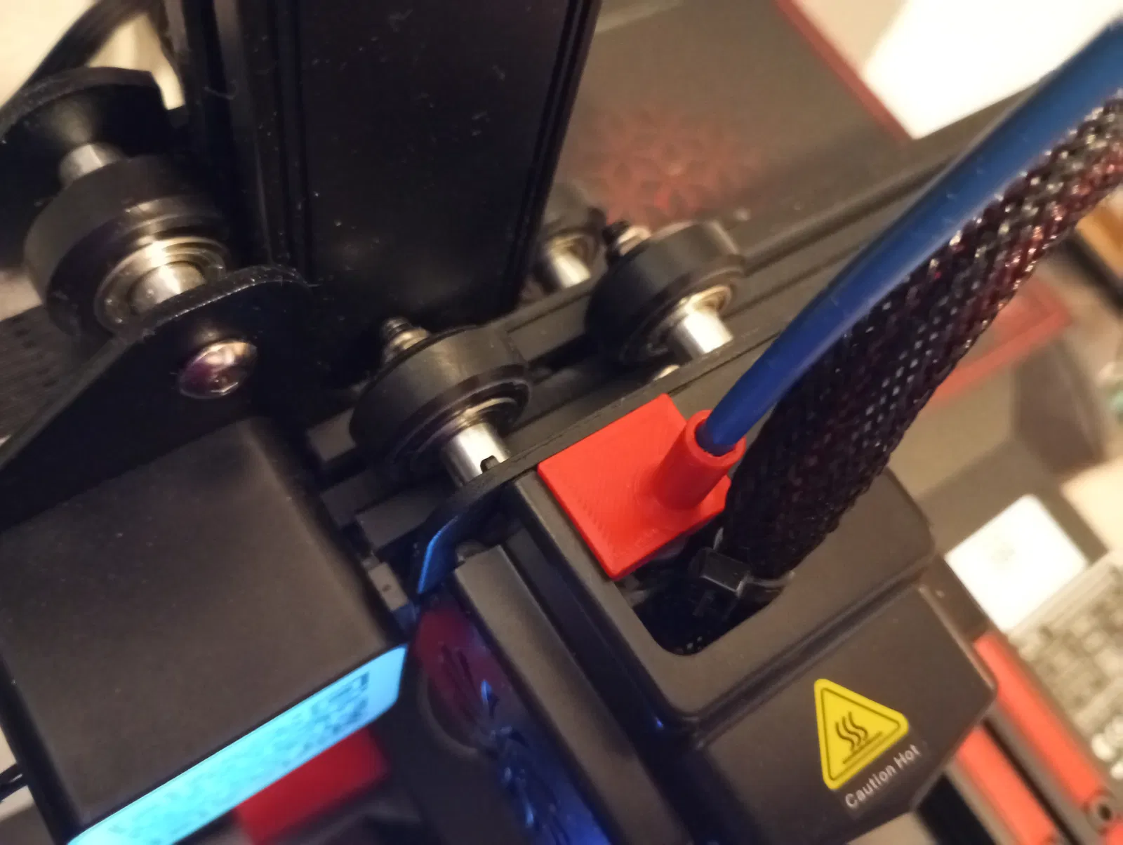 Nó chỉ việc gài vô cái ốp zin của cái đầu nóng Ender 2 Pro là xong, giúp giữ ống bowden thẳng đứng hơn trước khi đi vô cái heatsink.