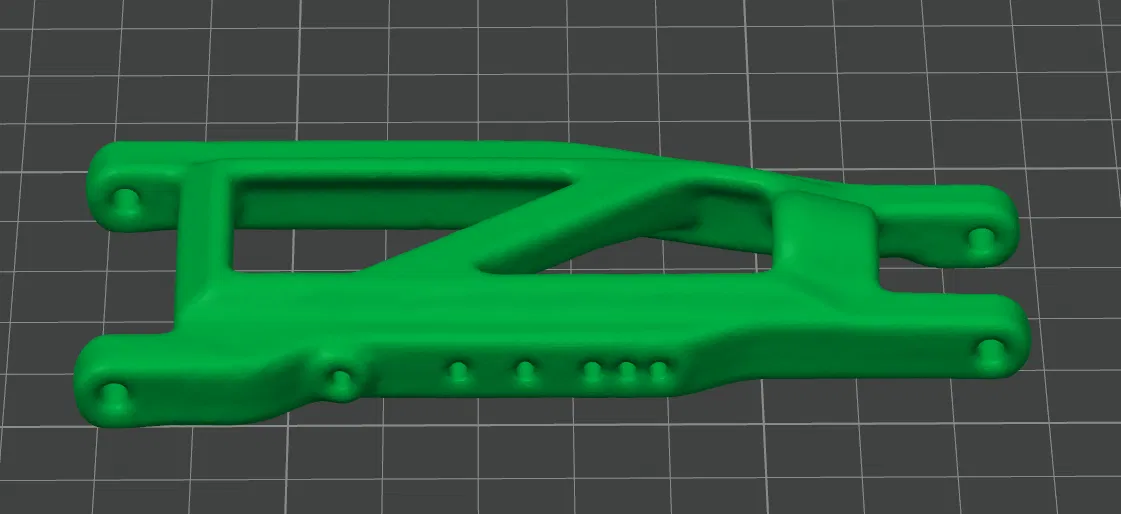 Tay đòn nâng cấp Traxxas 3655G, được scan 3D và in bằng PETG. Phiên bản màu đen đã được in thử nghiệm. Bản scan 3D giúp làm mượt các chi tiết, phù hợp để in và sử dụng cho xe RC.