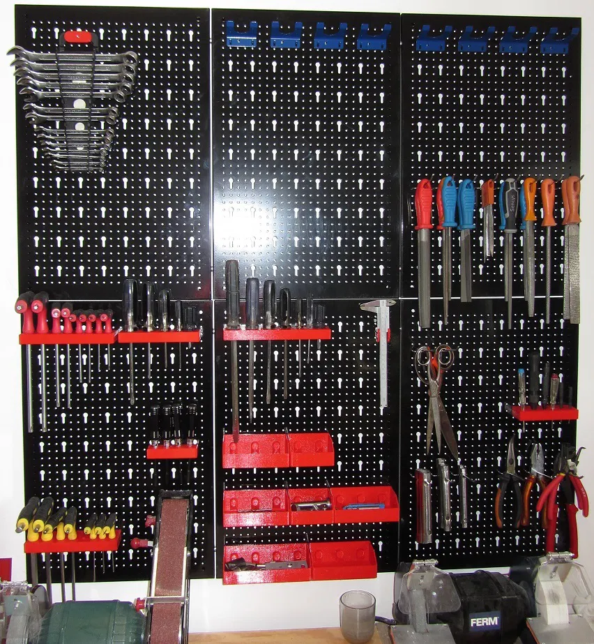 Các kích thước khay được cung cấp vừa với tường dụng cụ của tôi (khoảng cách giữa các lỗ lớn 45 mm và lỗ nhỏ 15 mm)