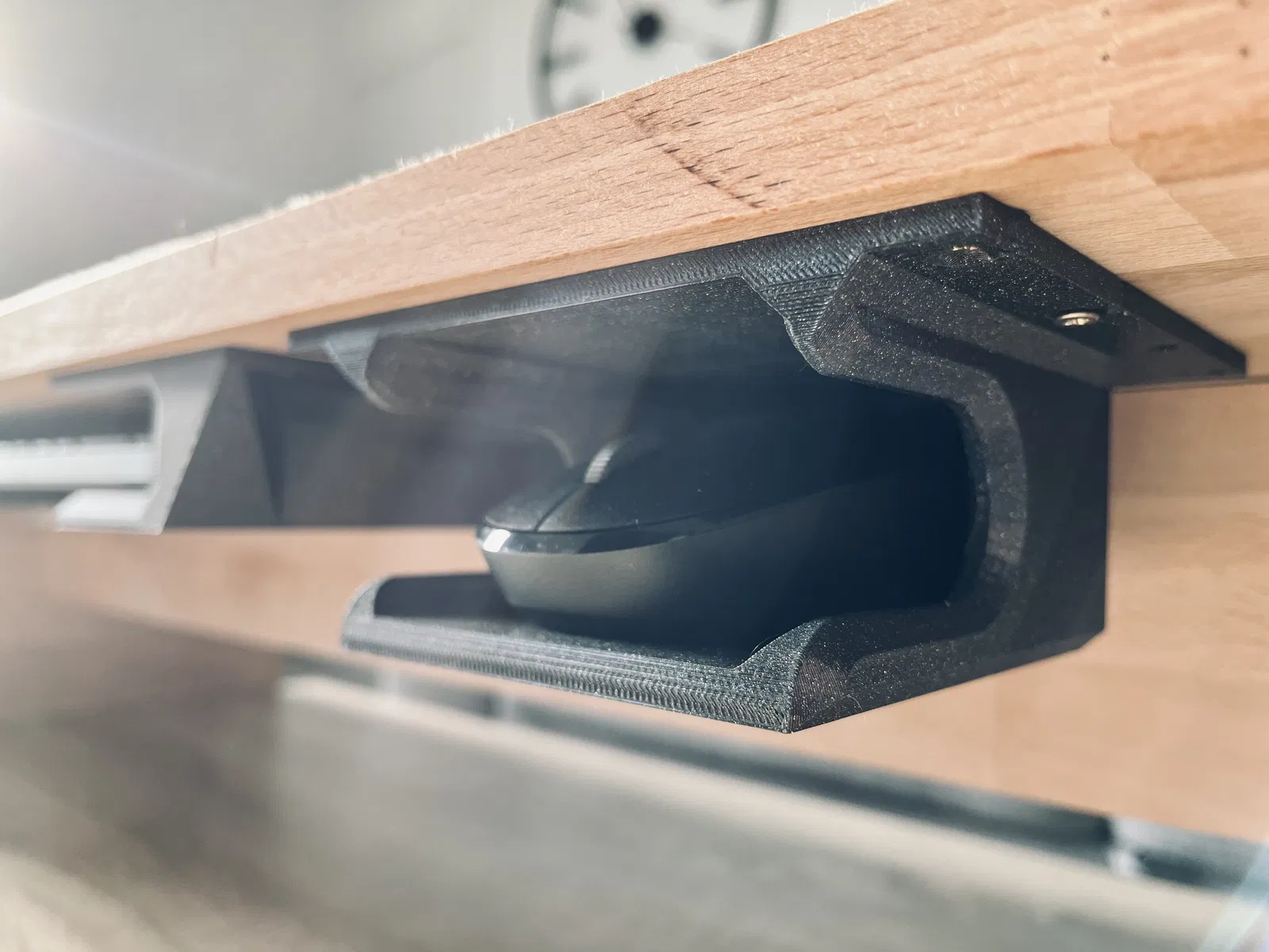 Cách dễ dàng để cất chuột của bạn dưới bàn làm việc hoặc bàn cà phê chẳng hạn! Đừng quên in cả hai phần phải và trái nhé. Bạn cũng có thể tìm thấy giải pháp tương tự cho bàn phím của mình.