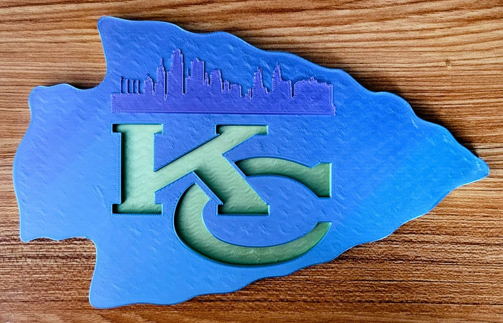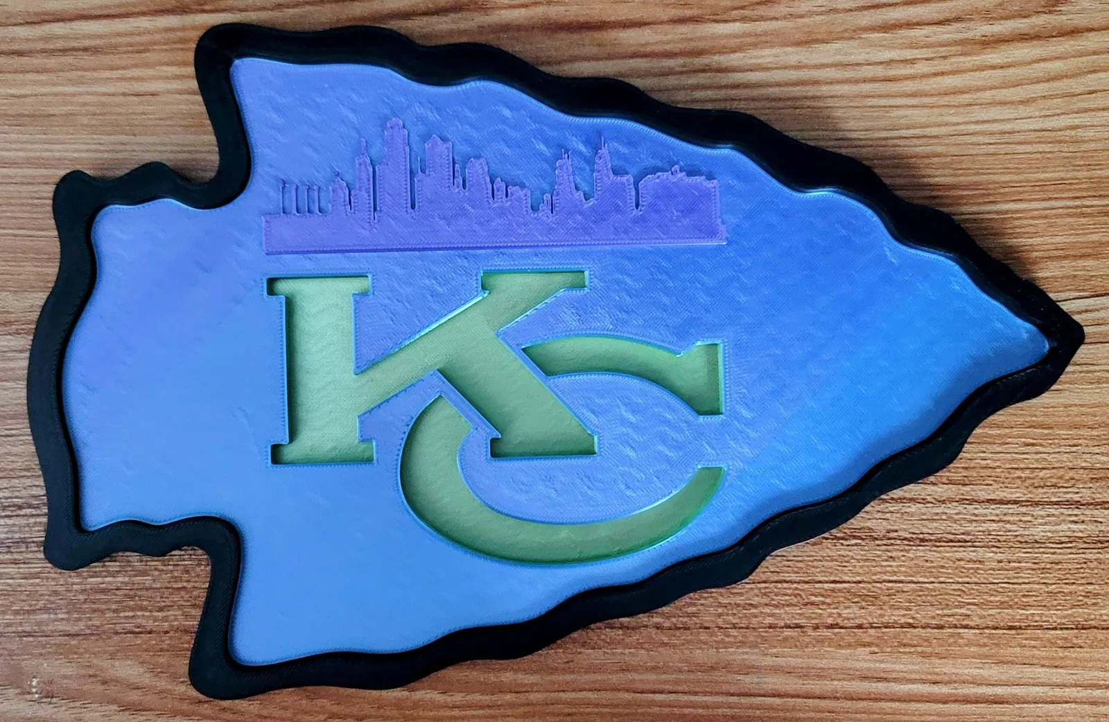 Logo treo tường này được thiết kế để tôi có thể có một logo Kansas City Chiefs mô-đun và tích hợp đường chân trời của KC. Sau khi thiết kế logo đường chân trời, tôi đã tạo ra một phần chèn thứ hai loại bỏ đường chân trời trong trường hợp mọi người chỉ muốn logo. Viền là một mảnh thứ hai và riêng biệt chỉ được ấn xung quanh phần bên trong. Nó khác biệt để bạn có thể chọn các sự kết hợp màu sắc mà bạn muốn mà không phải hiển thị các dải khác nhau từ sự thay đổi màu sắc ở bên trong.