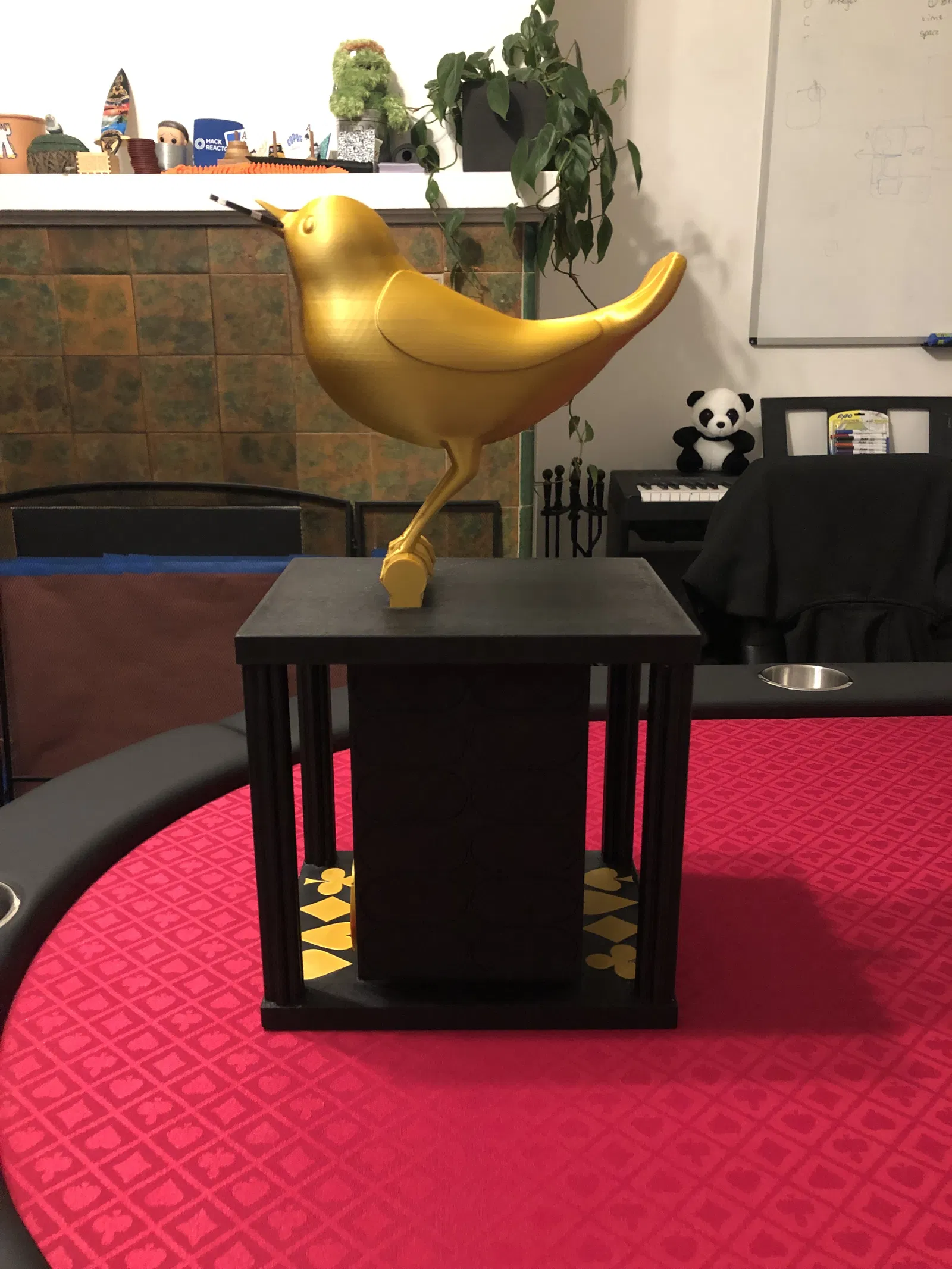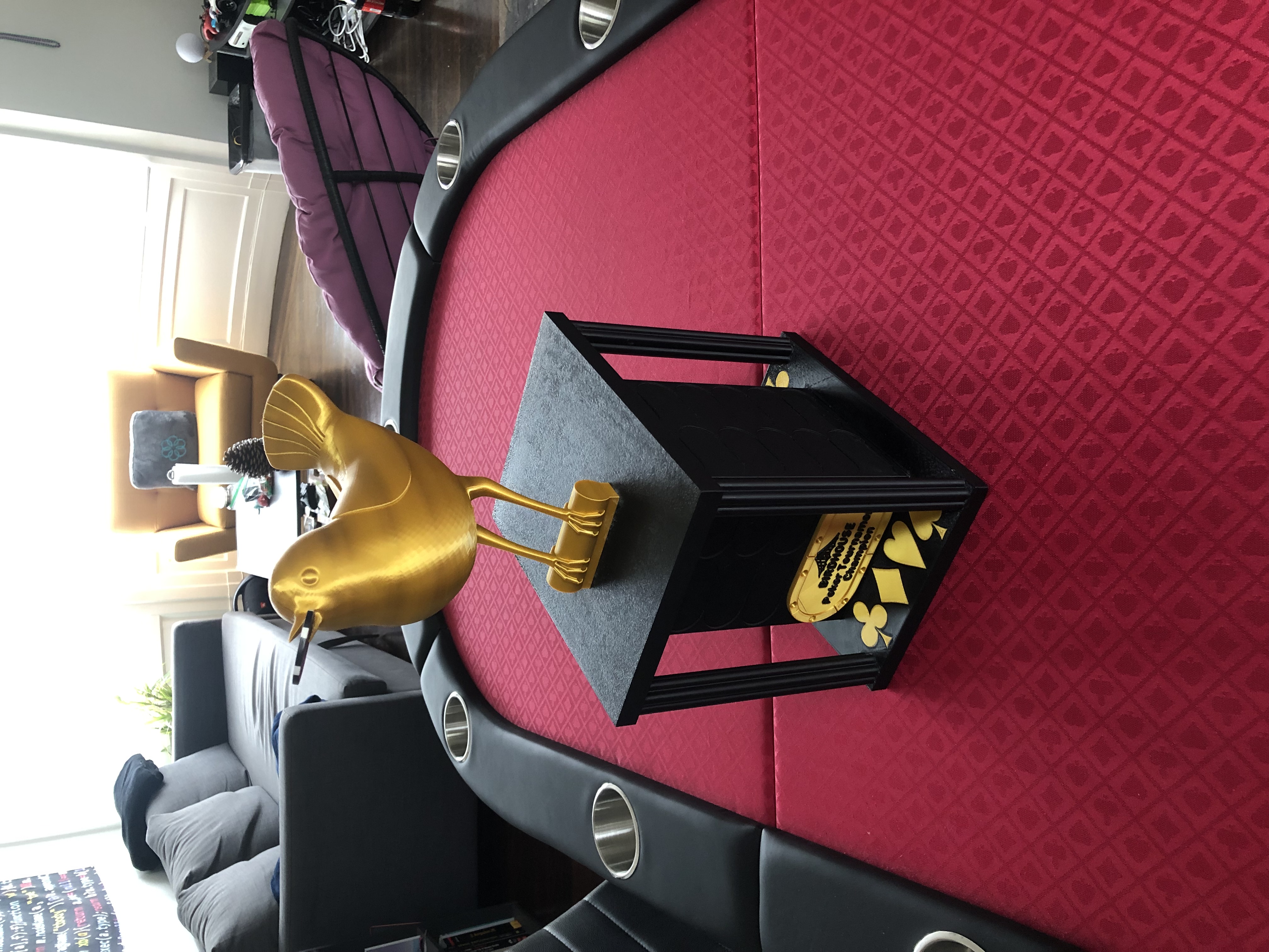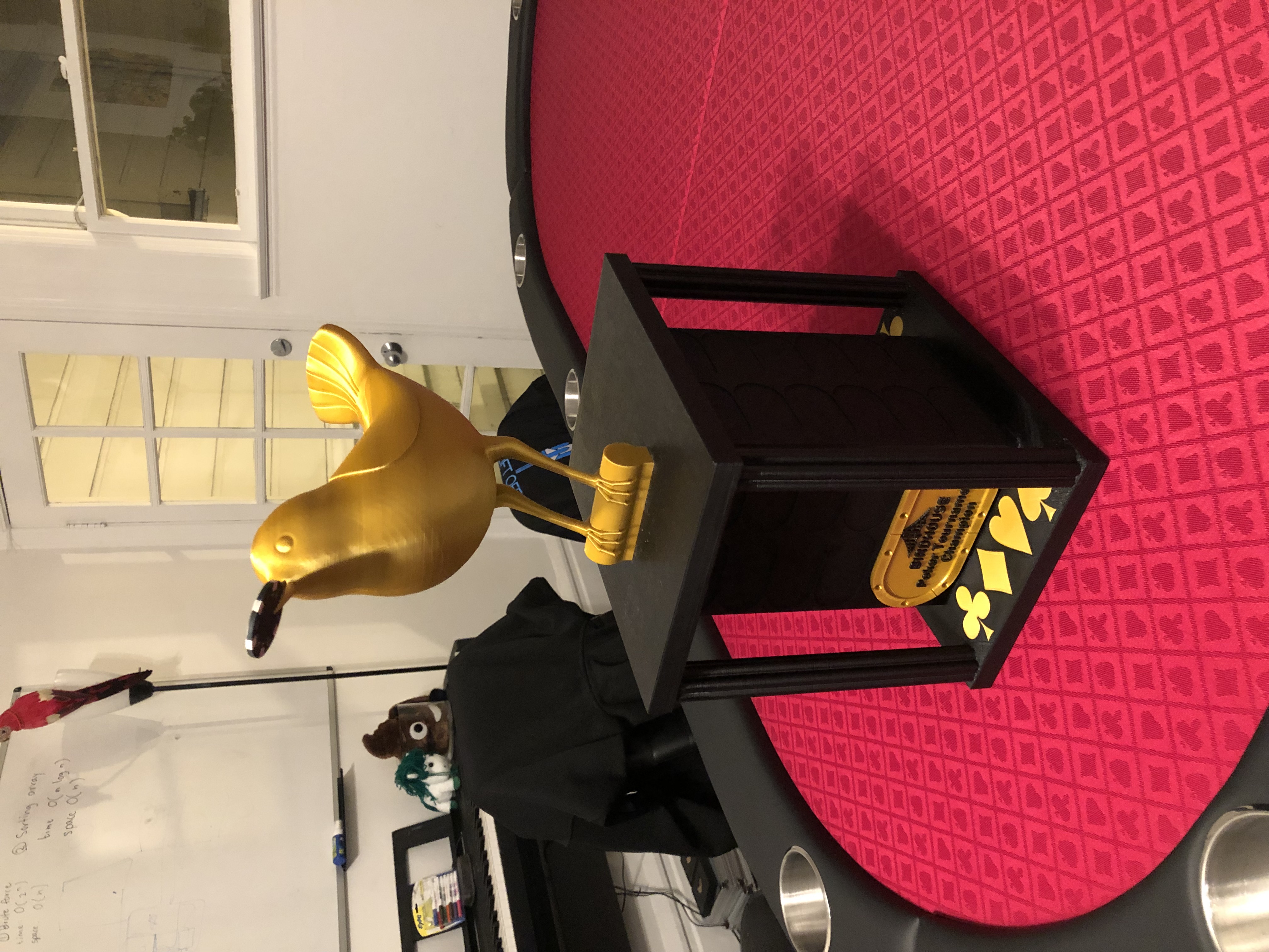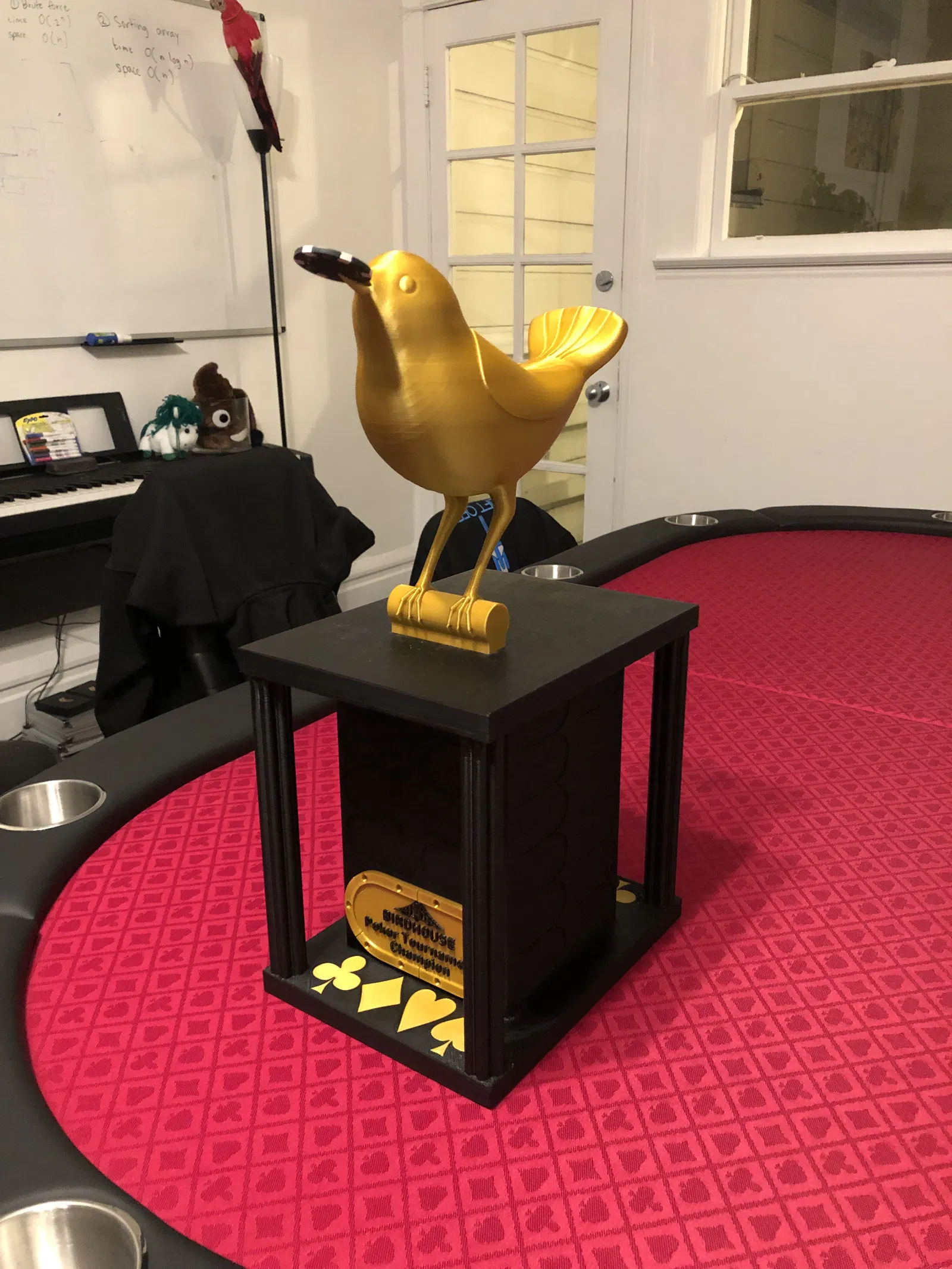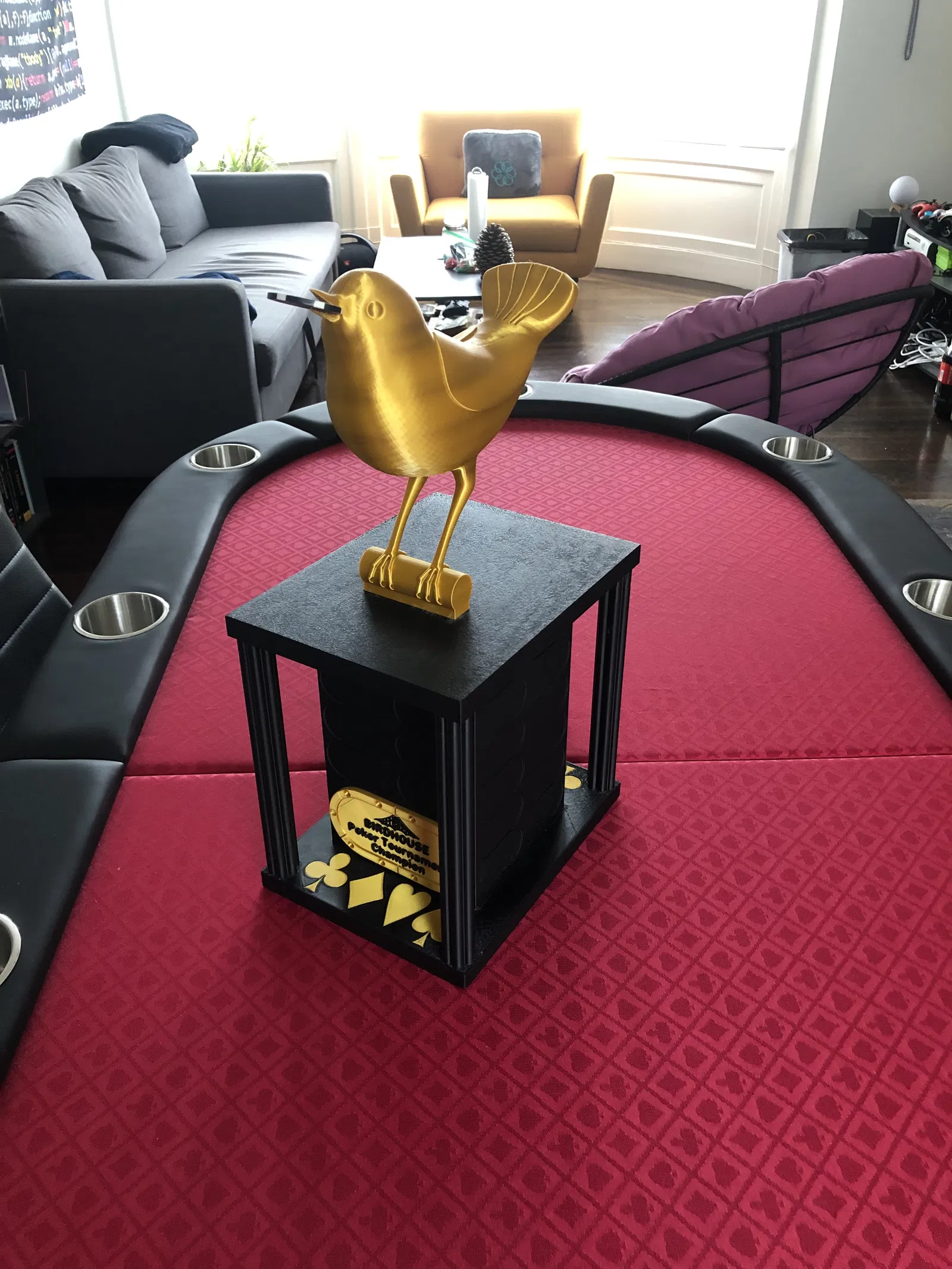 Chiếc cúp Poker này có thể vinh danh 44 người chiến thắng, với kích thước 7.75" x 10" x 19". Bạn có thể tùy chỉnh bảng tên và logo. Hướng dẫn in chi tiết các bộ phận, vật liệu và cài đặt, cùng lưu ý khi in phần chim.