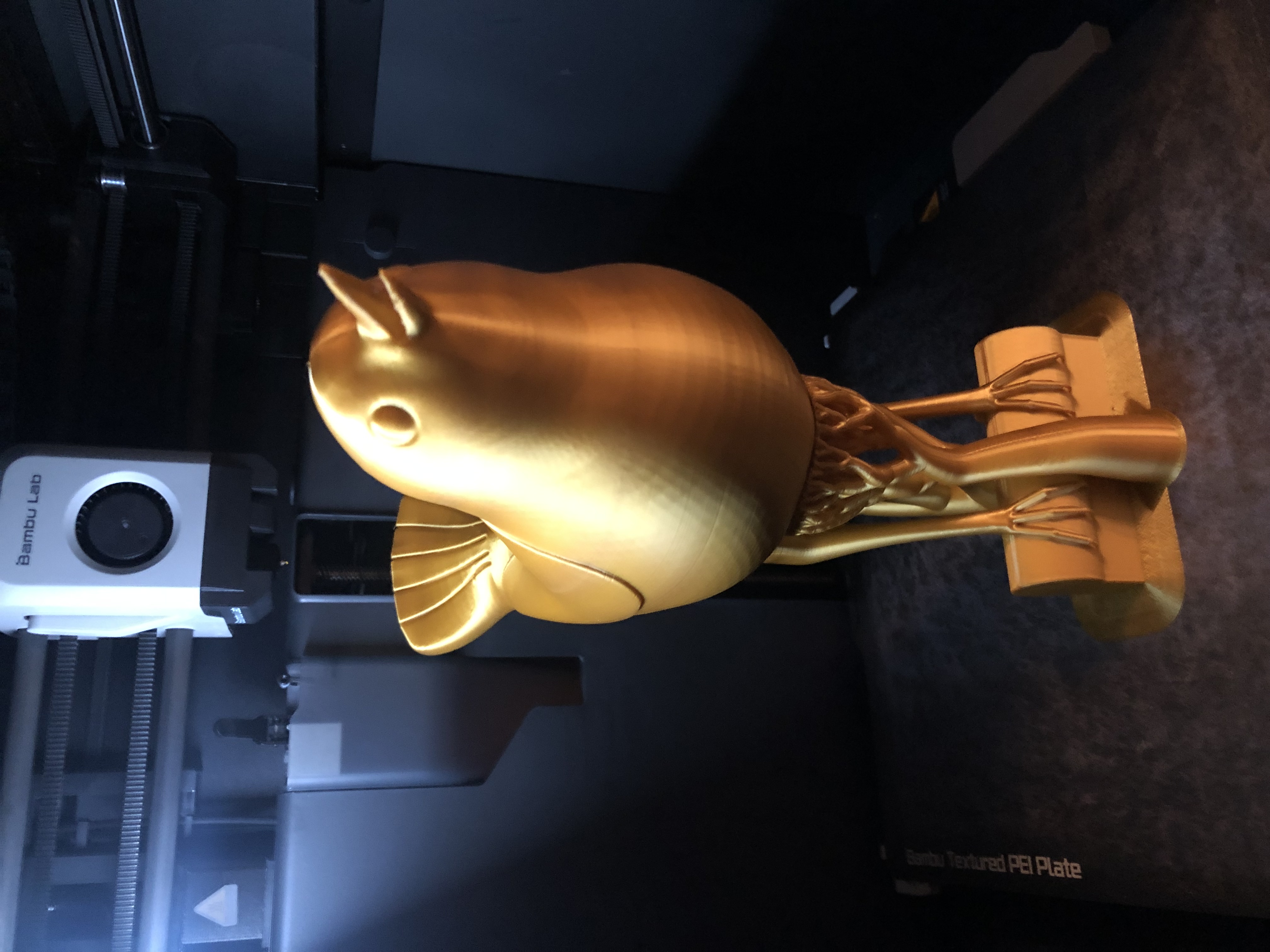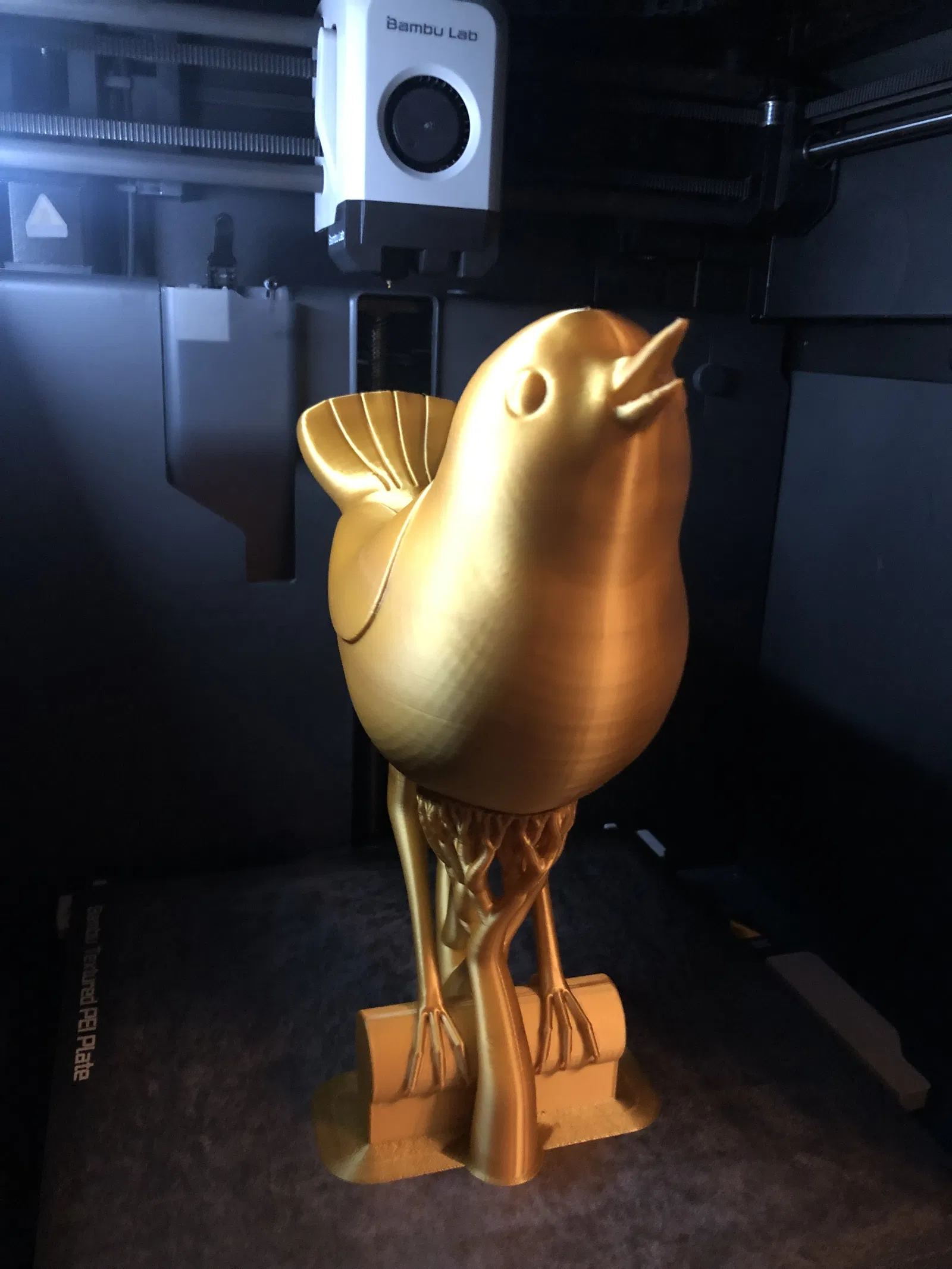 Phần chim là bộ phận duy nhất cần có bộ phận hỗ trợ (supports). Máy in của tôi bị lỗi vì đầu phun va vào làm đổ. Để in thành công, tôi đã làm như sau:
