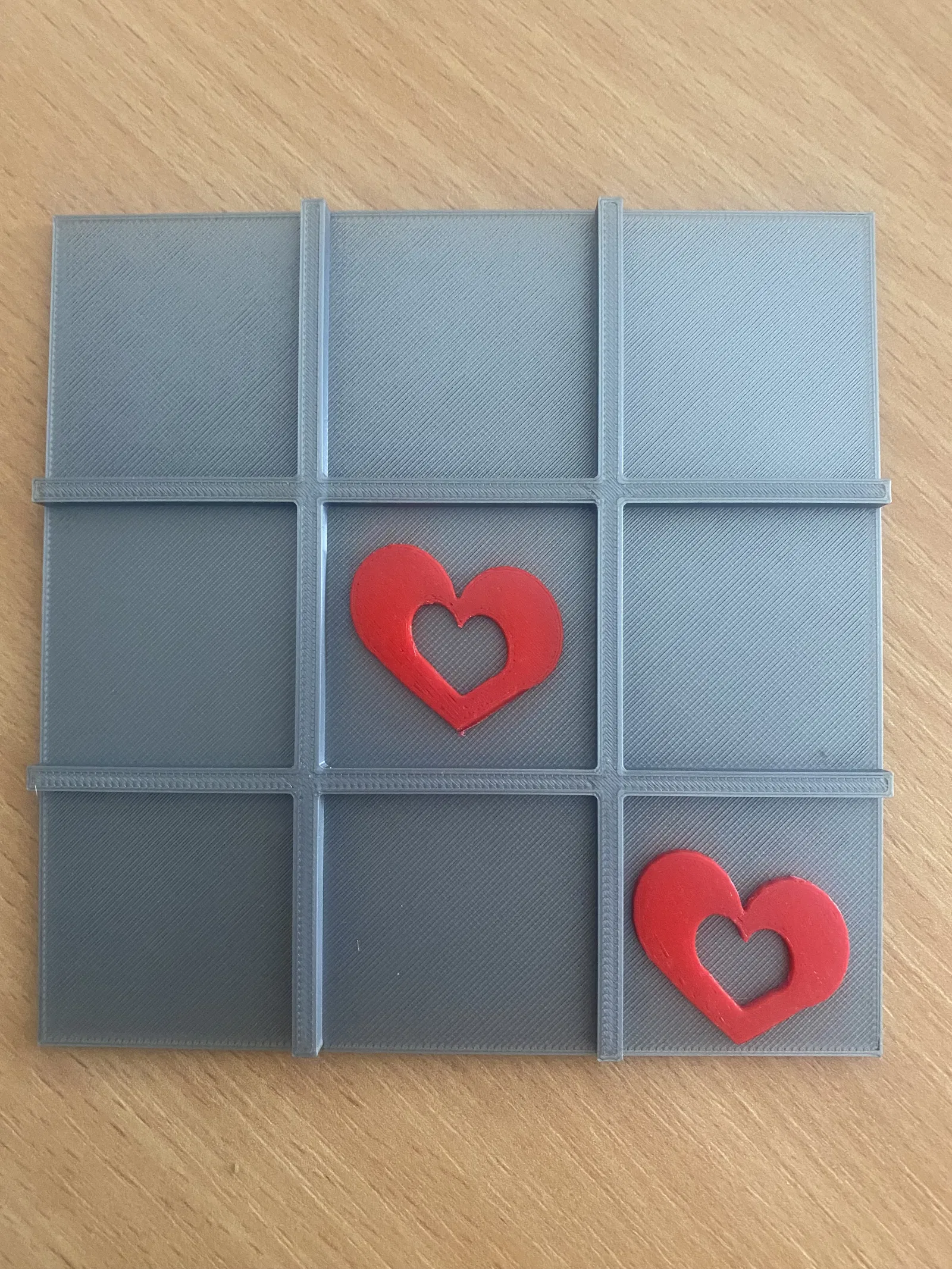 Mô hình cờ caro trái tim được tạo bởi TinkerCad. Có hai phiên bản: một sử dụng hình tròn và tam giác để tạo hình trái tim, phiên bản còn lại dùng hình trái tim có sẵn. Rất thú vị cho các cặp đôi!