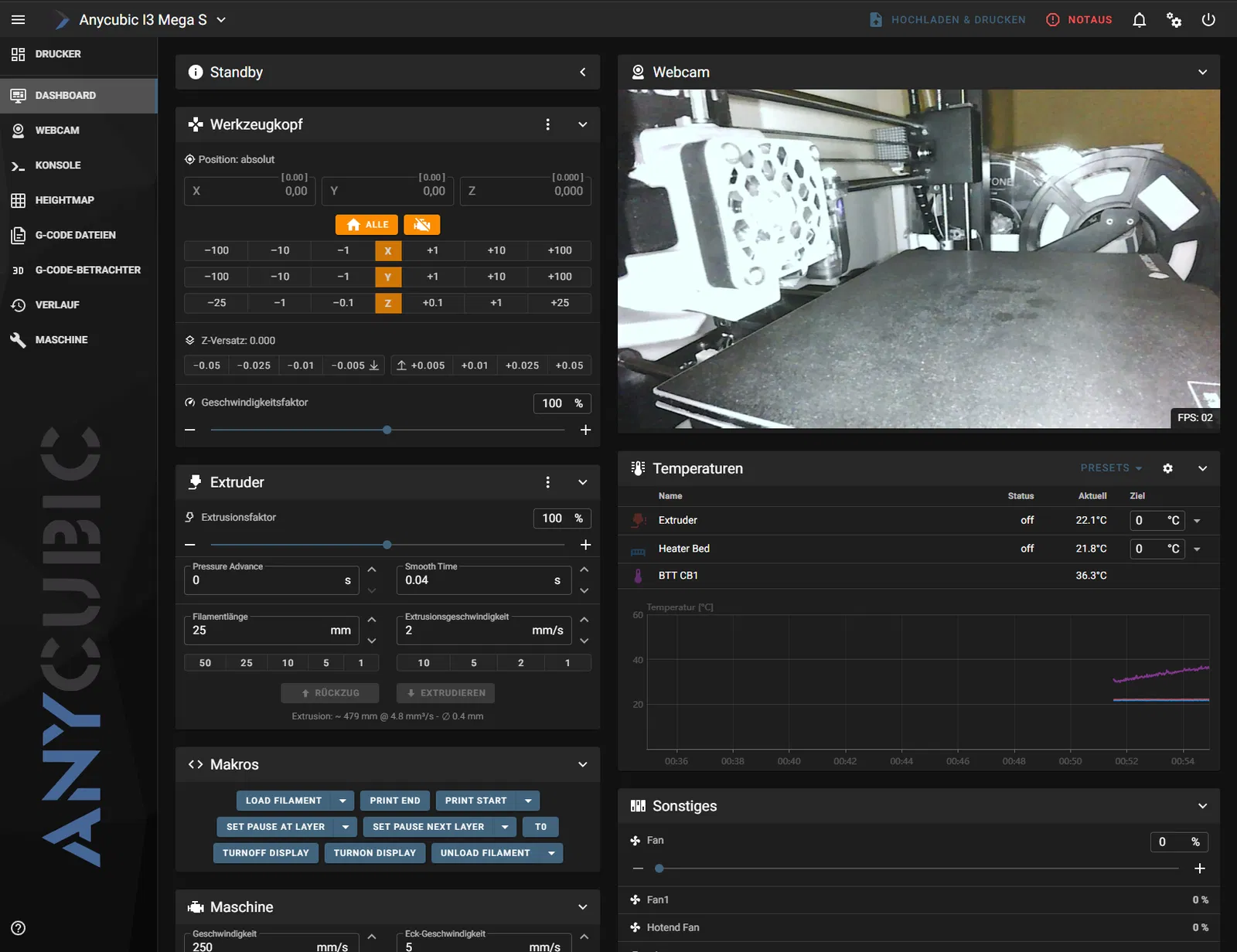 Đế webcam được gắn vào đế x/z và vặn bằng đai ốc in 3D từ phía sau. Mình cũng khuyên dùng một miếng băng dính. Thật không may là vặn đai ốc qua đế hơi khó, nhưng mà làm được ;)