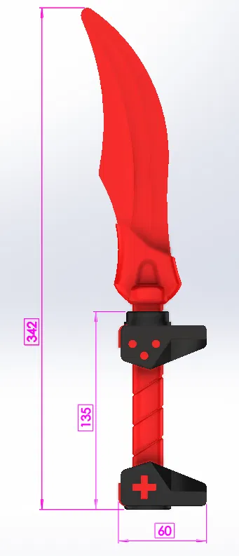Thanh kiếm lấy cảm hứng từ LEGO Ninjago, ban đầu được con trai tác giả vẽ. Mô hình được thiết kế cho trẻ em, có thể in đa sắc và các bộ phận riêng lẻ. Tác giả hy vọng sẽ cải tiến mô hình trong tương lai, sử dụng máy in mới hơn.