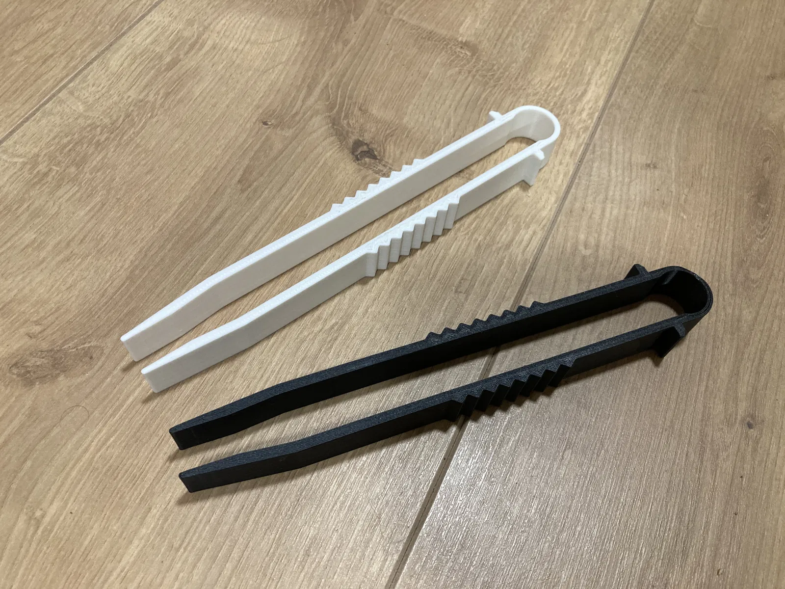 Kẹp gắp giấy ảnh dùng trong phòng tối. Nên in bằng nhựa PLA để có độ bền tốt nhất, không cần dùng support. Nên in nhiều màu để phân biệt các loại hóa chất, tránh trộn lẫn.