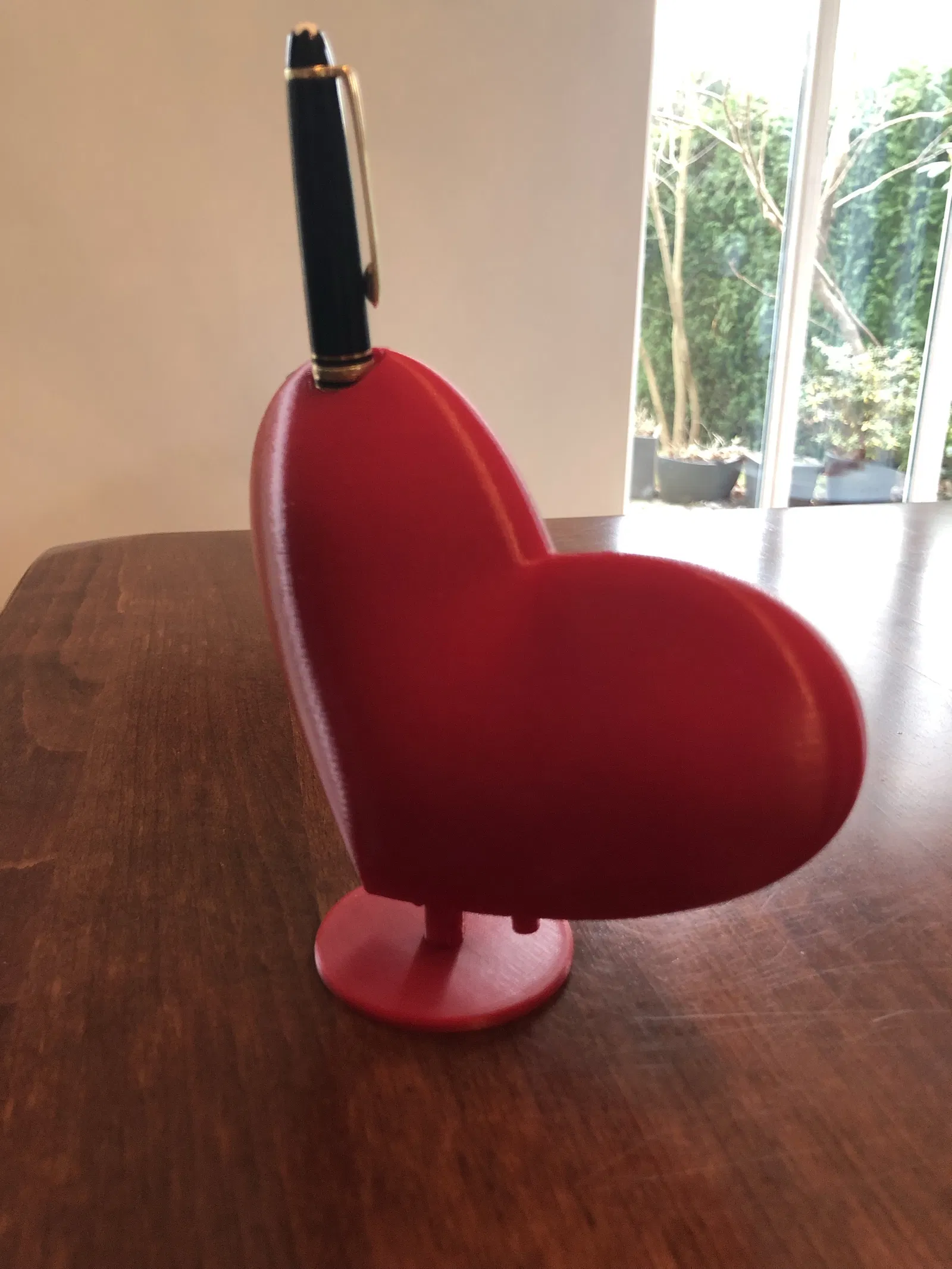 Trái tim bự này (12 cm) có chân đế xoay và có một lỗ nhỏ tròn trên đỉnh để bạn cắm bút hoặc hoa khô.