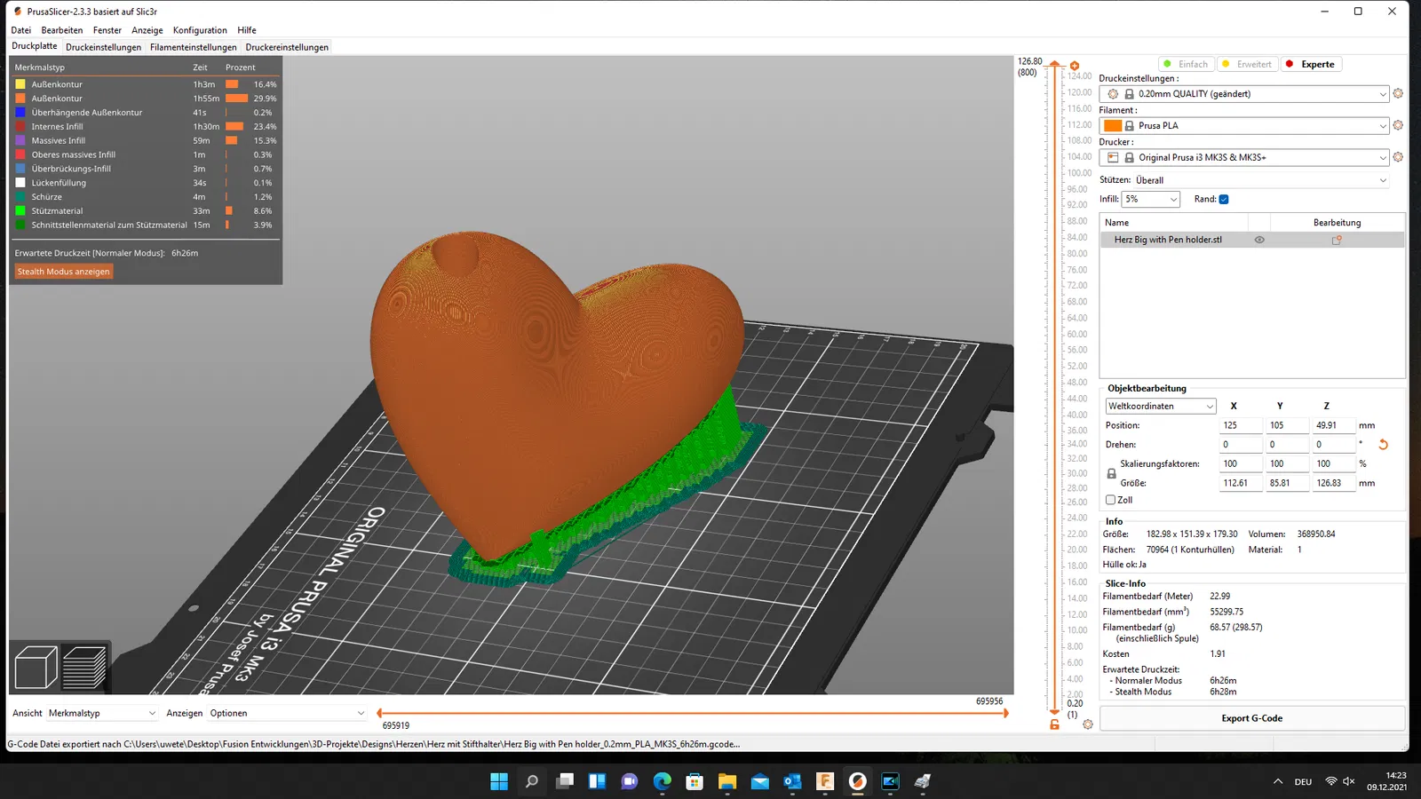 Mình đã dùng 5% infill cho trái tim để nó cứng cáp hơn.