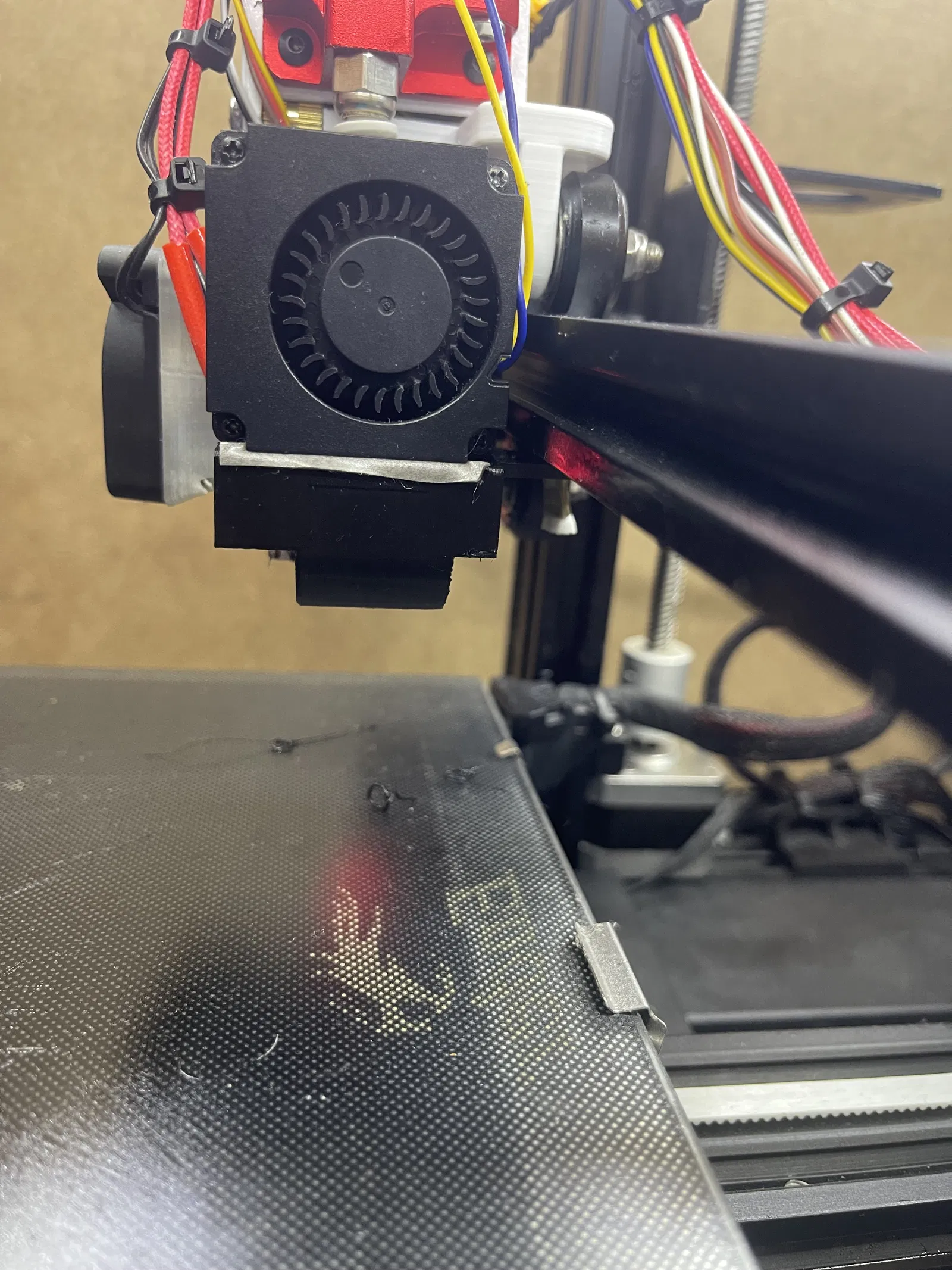 Cửa gió được dời vào giữa để thổi khí đều lên đầu phun của hotend.