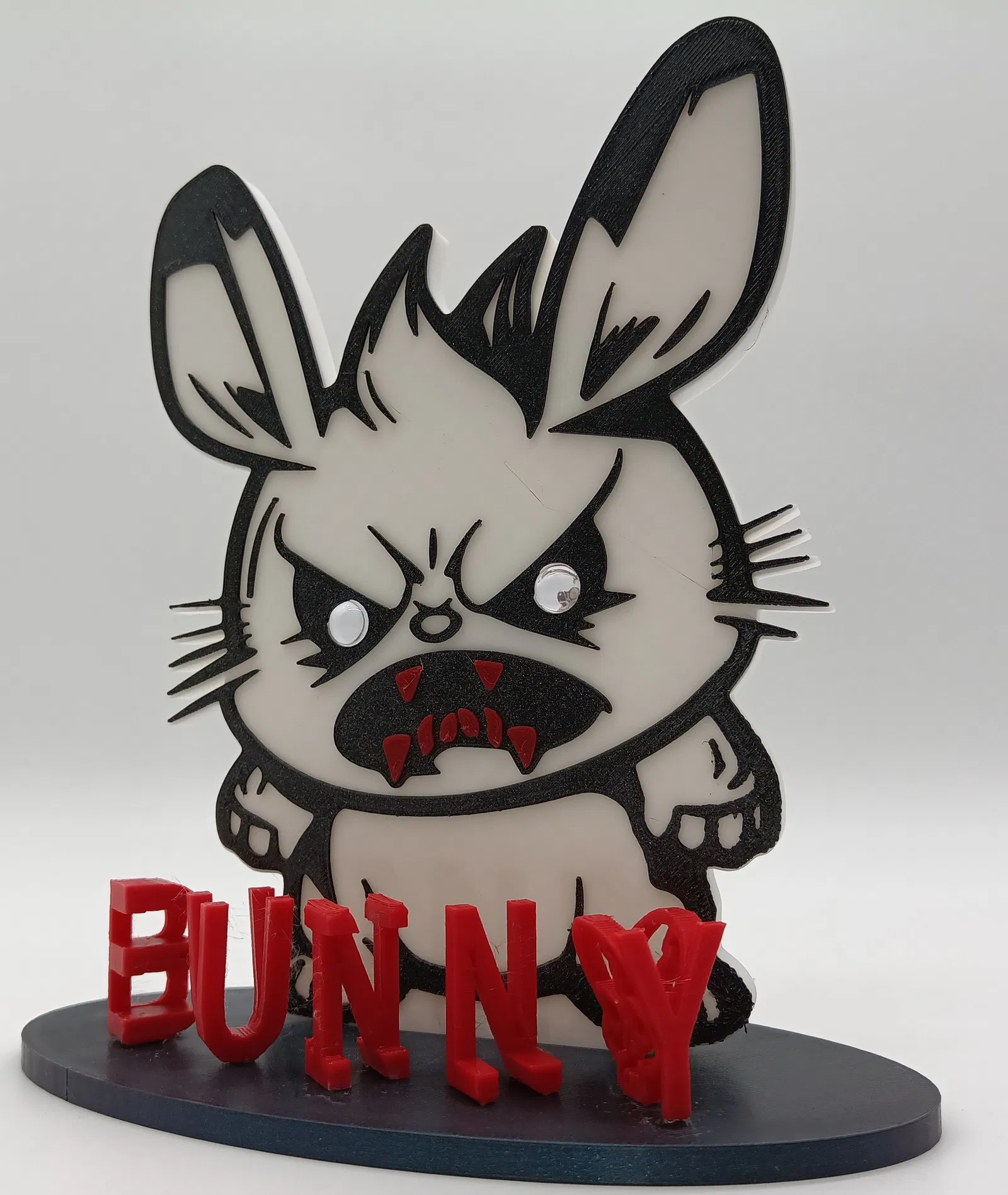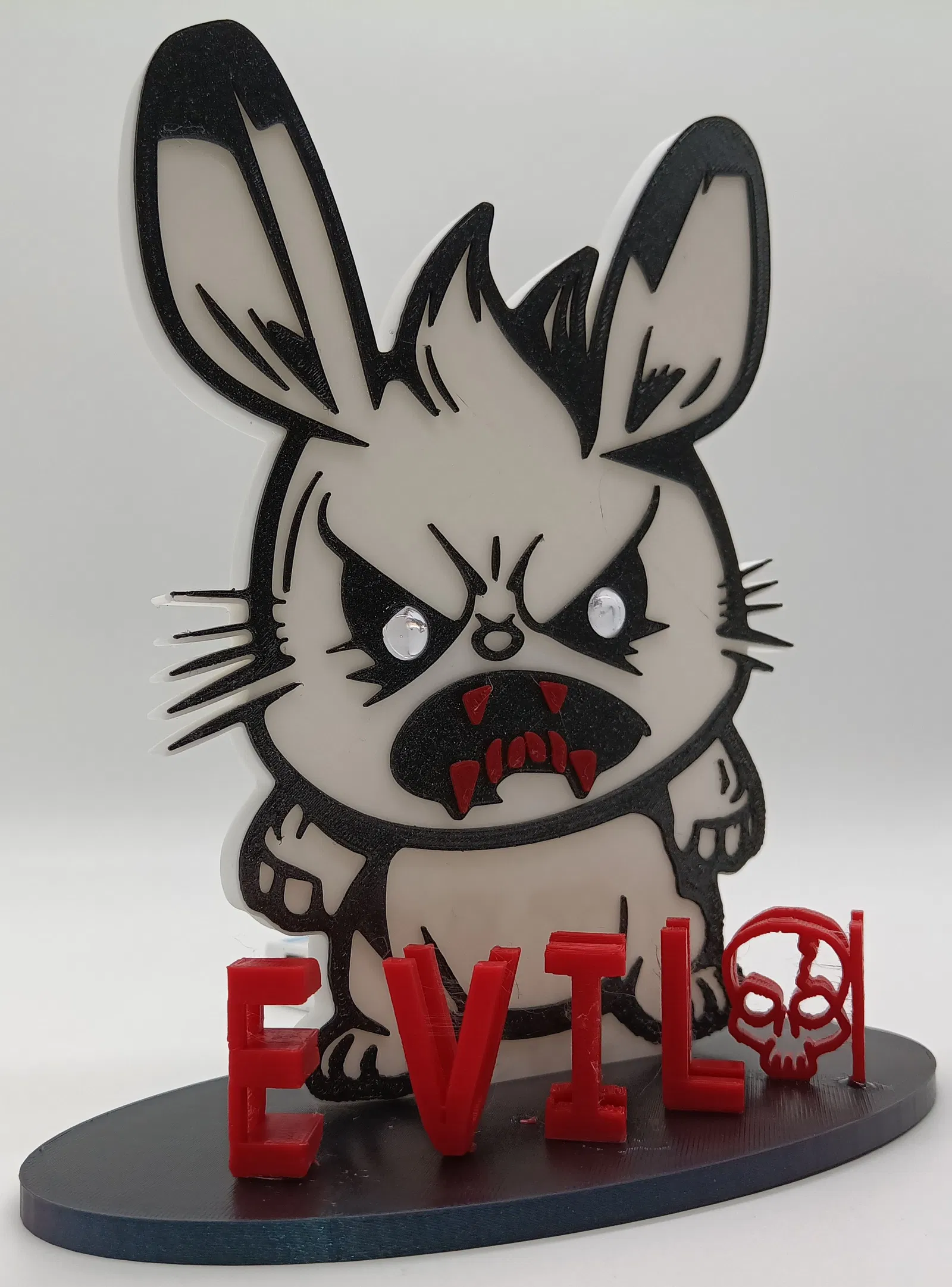 Thỏ Quỷ Đêm với đôi mắt phát sáng (LED 10mm). Có mạch cảm biến ánh sáng hoặc công tắc đơn giản. Hoàn hảo cho phòng ngủ hoặc làm đồ trang trí.