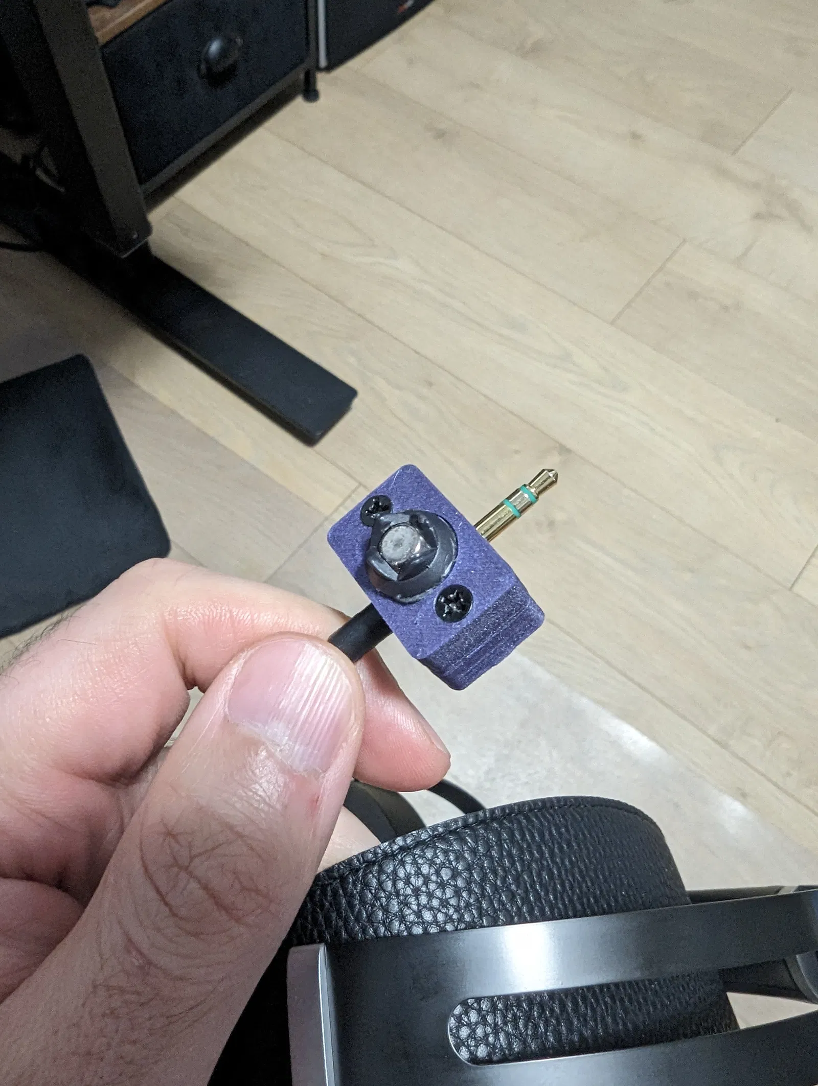 Tôi quyết định dùng đai ốc để hai mảnh có thể kẹp chặt với nhau vào đầu cắm.