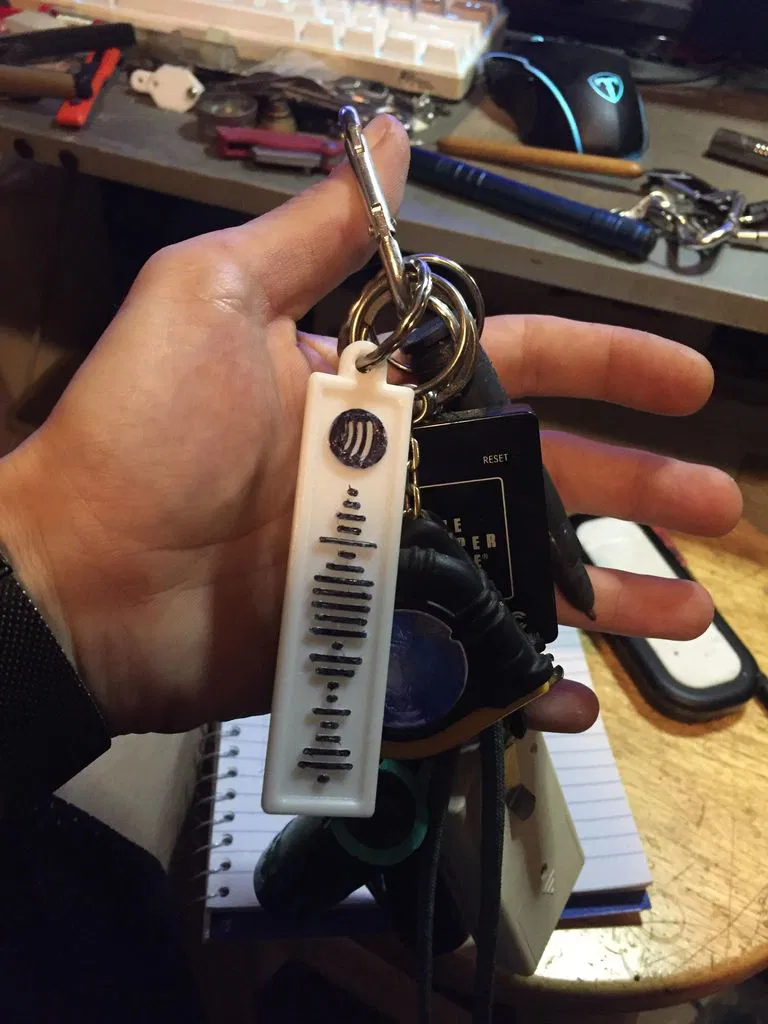 Tìm thấy cái gốc sáng nay và quyết định lấy nó ra xem có làm nó mượt hơn được không để khi rút chìa khóa ra khỏi túi khỏi bị vướng. Tôi đã bo tròn các cạnh và làm cho phần mã lõm vào mô hình để bằng phẳng với mặt trên. Hướng dẫn sử dụng Tinkercad và tạo mã Spotify SVG.