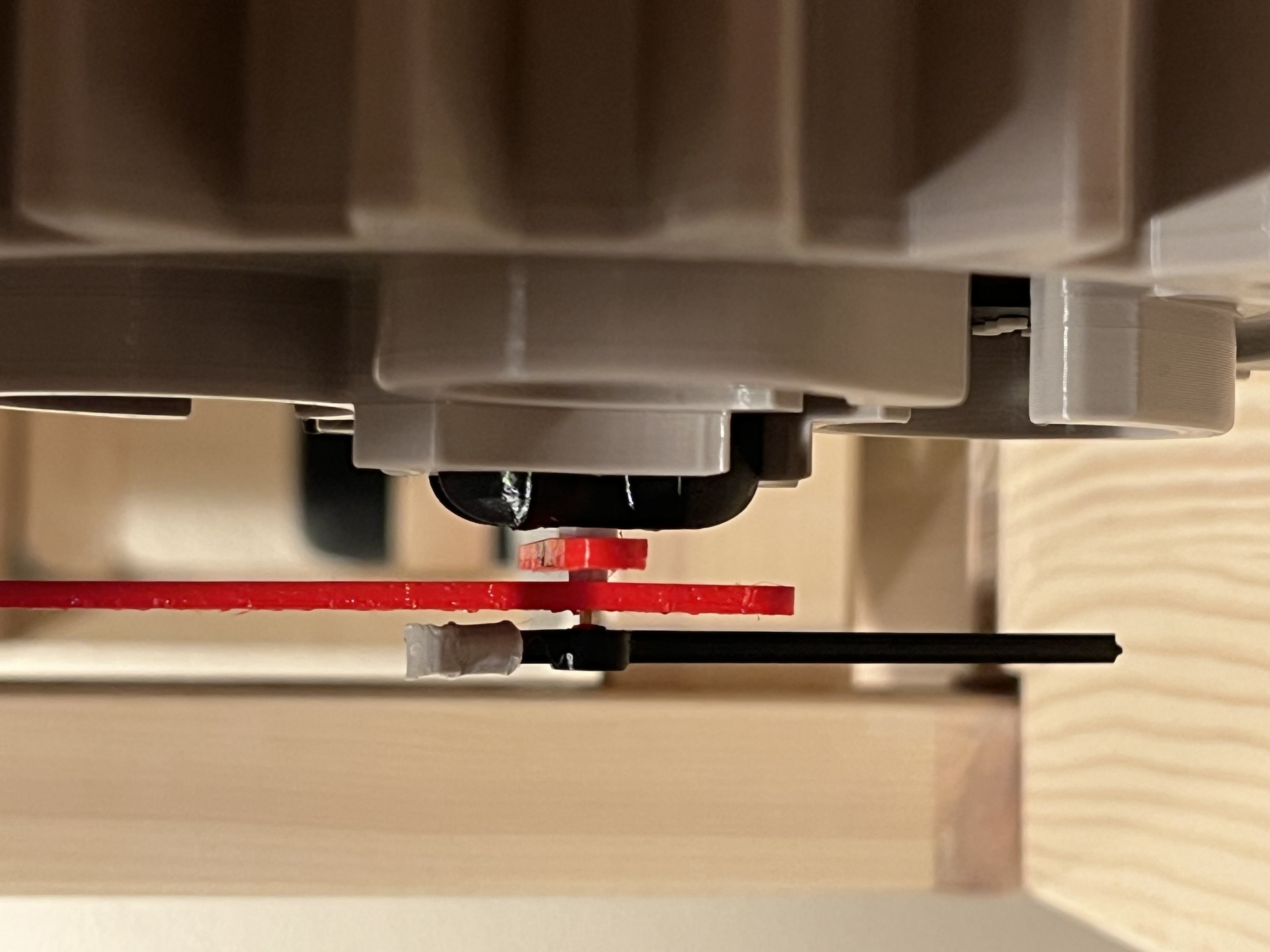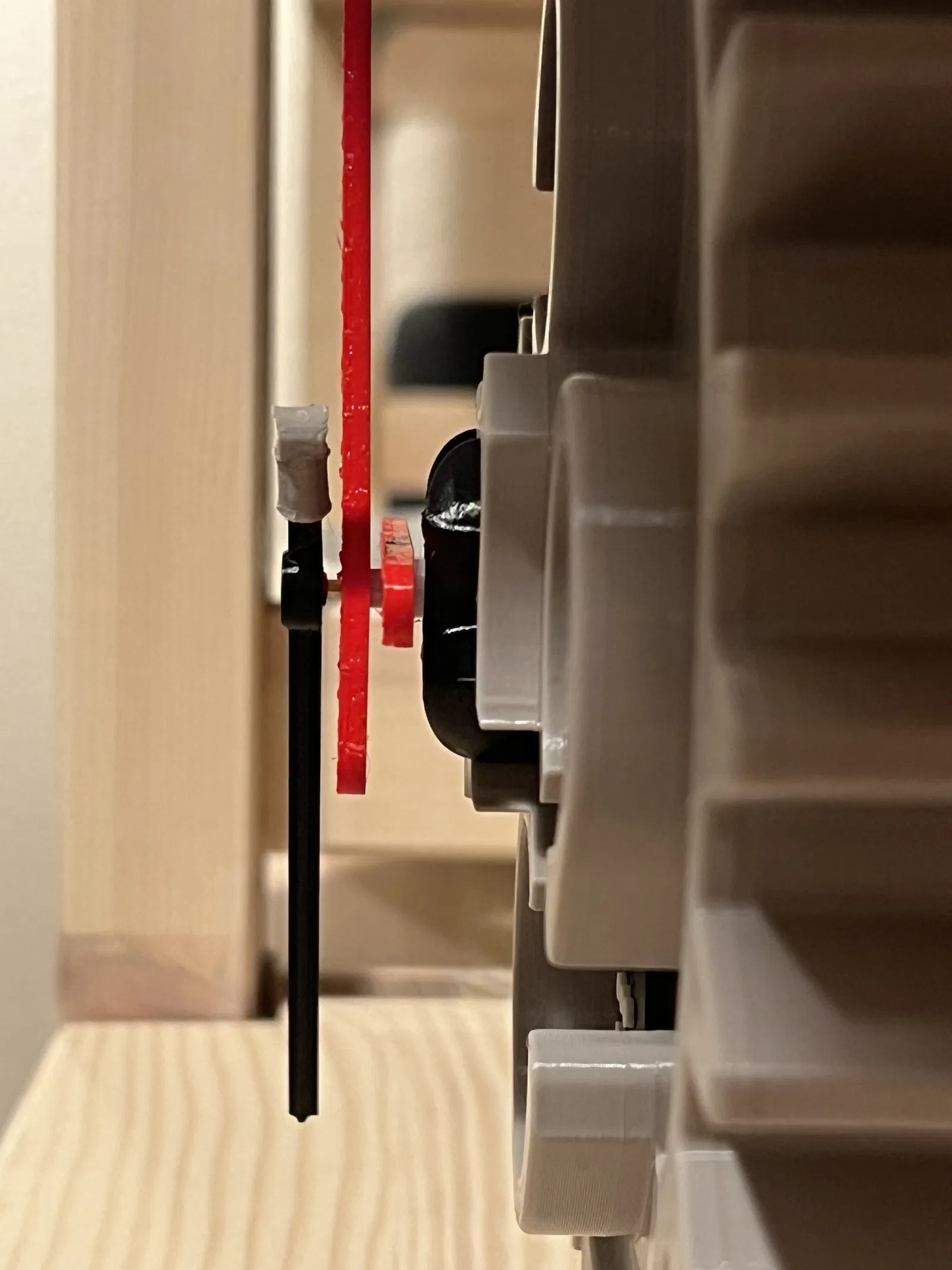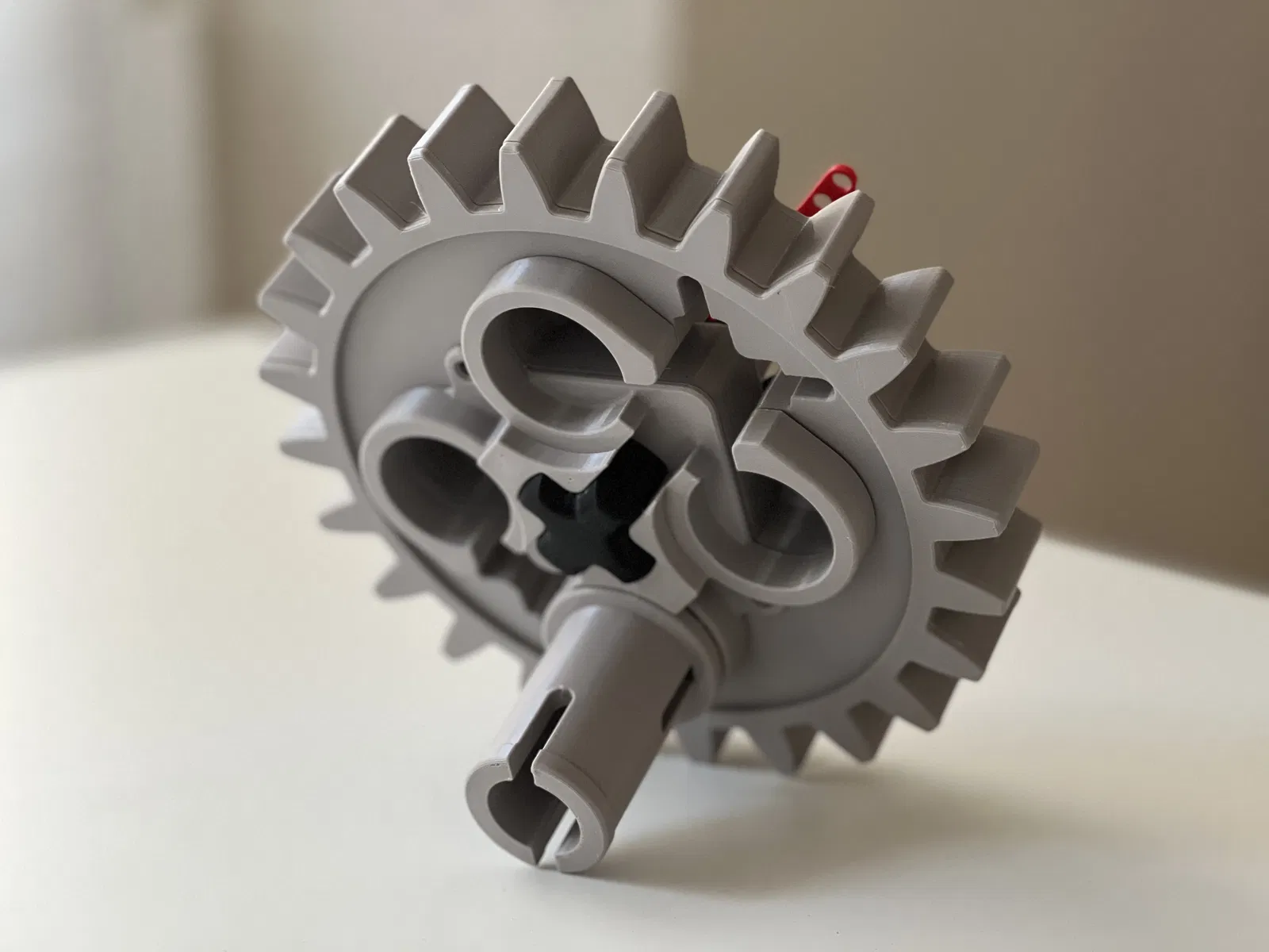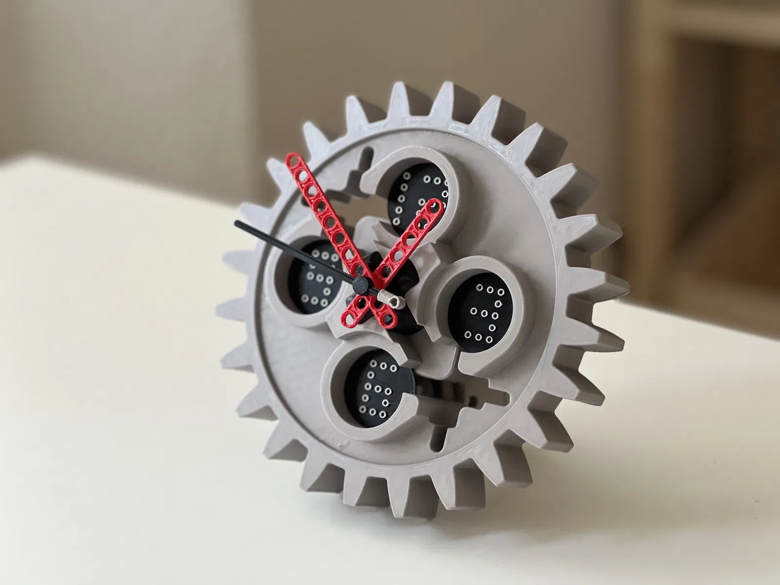 Chất liệu cho tất cả các bộ phận màu xám là Prusament PETG urban grey. Màu sắc rất giống với các bộ phận LEGO Technic nguyên bản. Đối với kim đồng hồ, tôi đã sử dụng PETG lipstick red và PLA jet black. Lẽ ra tôi nên in kim màu đỏ bằng PLA, nhưng tôi không có cuộn PLA màu đỏ nào sẵn. Kim đồng hồ của tôi bị hơi ảnh hưởng bởi hiện tượng dây tóc, nhưng với PLA thì bạn sẽ ổn.