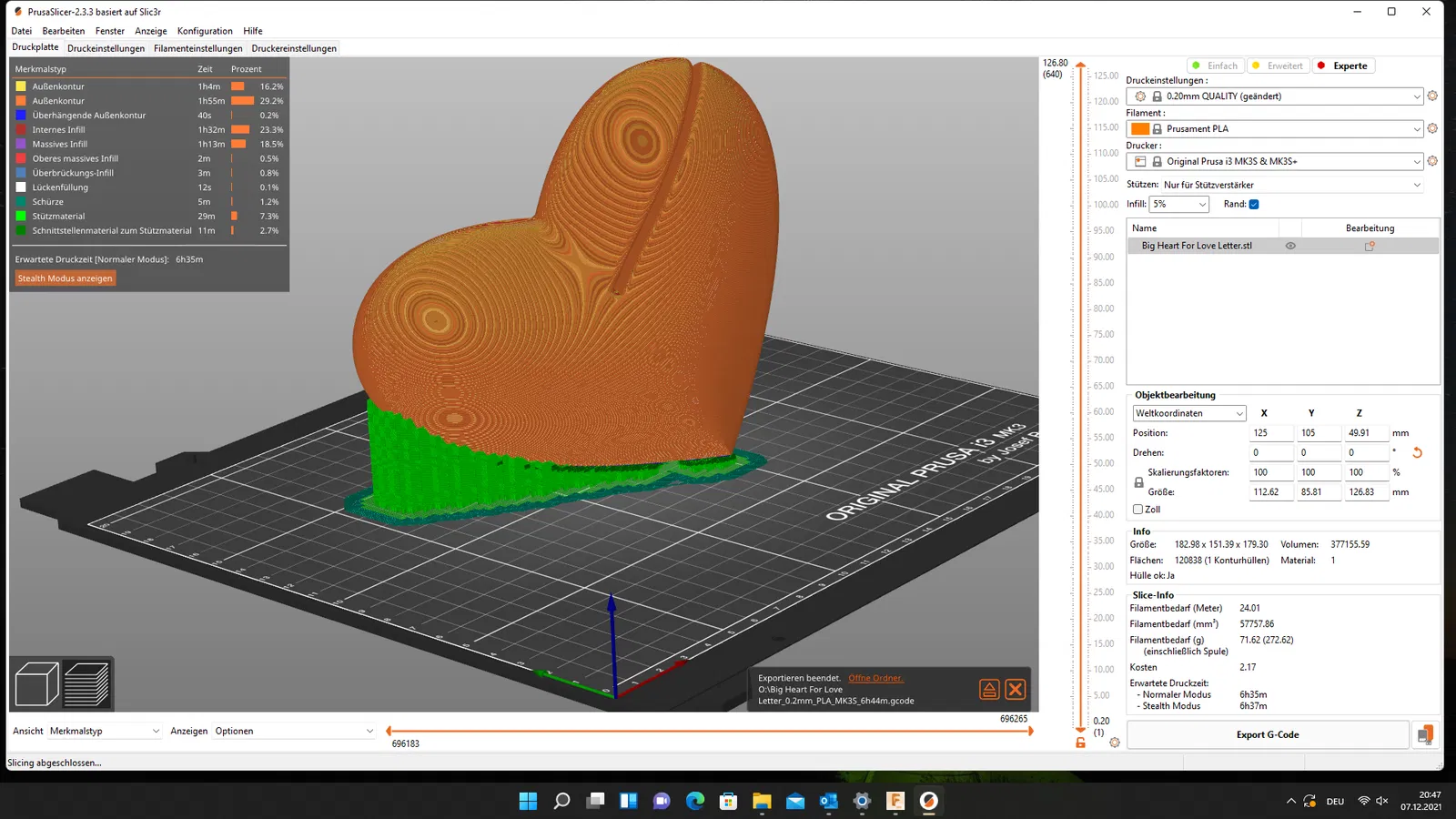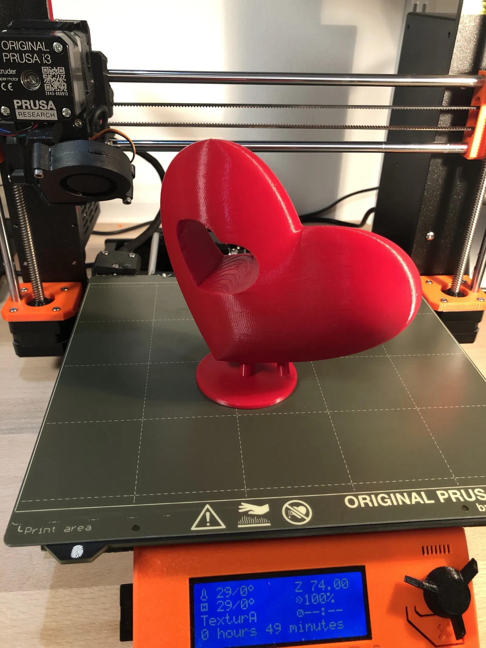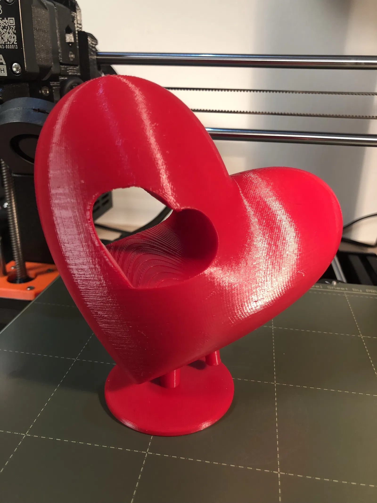 Tôi không sử dụng support cho trái tim nhỏ. Ở vị trí thích hợp, bạn có thể có chất lượng in tốt mà không cần support. Tôi đã sử dụng Fusion 360 và Prusa slicer cho thiết kế này.