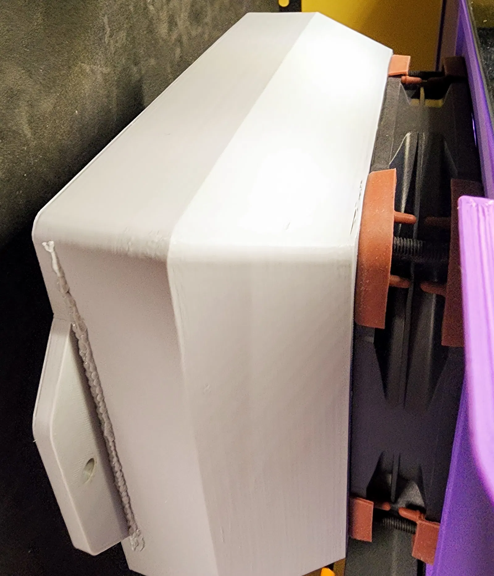 Đây là một bộ chuyển đổi/giá đỡ bộ lọc để lắp bộ lọc HEPA LV-H128 vào quạt 120mm. Mục đích chính của nó là lọc không khí được hút ra từ một tủ. Mặt sau của thân bộ lọc được thiết kế để gắn quạt 120mm. Có hai kiểu thân. Một loại dùng cho đế ren ép nhiệt và bu lông M4. Loại thứ hai dùng cho bu lông M4 và đai ốc lục giác. Ngoài ra còn có hai kiểu nắp. Một kiểu là thiết kế mở. Kiểu thứ hai có chỗ để gắn quạt 120mm bằng đai ốc và bu lông M3/M4. Cố gắng giữ cho các rãnh giữ ốc vít bên trong càng mỏng càng tốt. Mặc dù có một khoảng hở nhỏ giữa bộ lọc và nắp, nếu bu lông của bạn quá dài, chúng sẽ chạm vào bộ lọc. Các nắp gắn bằng bu lông M4 hoặc M5, hoặc bất cứ thứ gì bạn có vừa với các lỗ lớn hơn. Bạn có thể lắp bộ lọc theo hướng luồng khí vào hoặc ra tùy theo nhu cầu, bằng cách sử dụng điểm gắn quạt ở mặt sau bộ lọc hoặc nắp có giá đỡ quạt. Bộ lọc LV-H128 khá lớn, vì vậy quạt của bạn cần có áp suất tĩnh tốt để đẩy không khí qua nó. Tôi thấy phương pháp hiệu quả nhất là hút không khí qua thay vì đẩy, nhưng nếu quạt của bạn đủ mạnh thì cả hai cách đều có tác dụng. Cấu hình quạt ưa thích của tôi (có liên kết Amazon) là: * Noctua NF-F12 iPPC 3000 PWM, Quạt làm mát hạng nặng - https://www.amazon.com/gp/product/B00KFCRATC