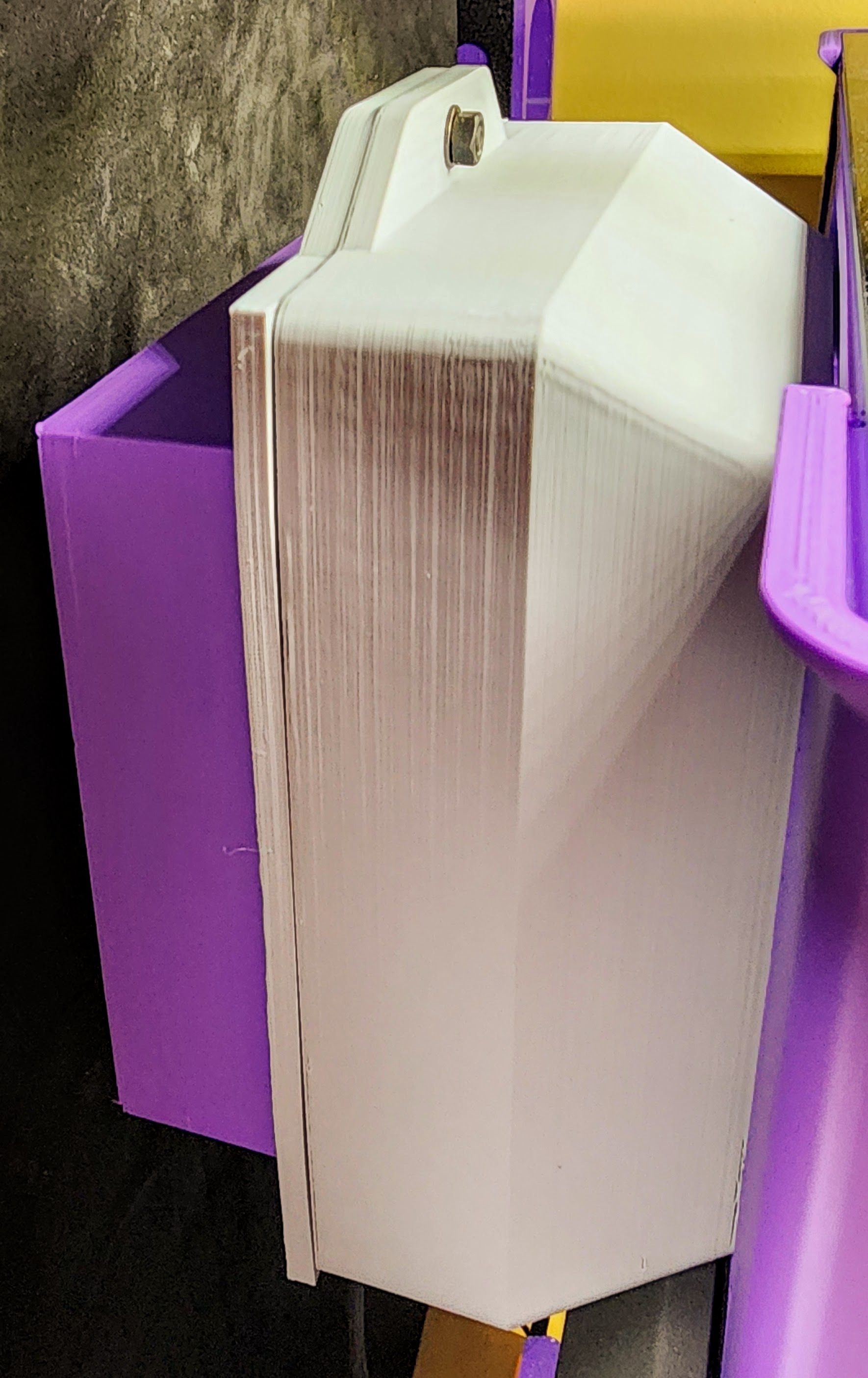 - Bộ chuyển đổi nguồn quạt 12V 2A DC Nguồn ngoài - https://www.amazon.com/gp/product/B071V9CQ5H (Hoặc bất kỳ loại tương tự nào) NF-F12 chạy khá êm ở tốc độ trung bình. Ở công suất tối đa, nó ồn hơn, nhưng không quá tệ. Tuy nhiên, nó có công suất dự phòng. Các bộ lọc tôi đang sử dụng là bộ lọc "thông thường". Bất kỳ bộ lọc kiểu LV-H128 nào cũng nên vừa vặn, nhưng tôi đang sử dụng loại này: https://www.amazon.com/gp/product/B08PV559JP Tôi cũng thường sử dụng nắp quạt của mình, để mọi thứ trông gọn gàng hơn một chút. Bạn có thể tìm thấy chúng tại đây: /3d-model/bia-quat-120mm-4 Trong hình với thân bộ lọc màu xám gắn quạt có nắp màu tím, tôi đang sử dụng bu lông M4 40mm có vòng đệm và đai ốc lục giác để giữ quạt vào bộ lọc bằng nắp gắn quạt. Thân bộ lọc sử dụng đế ren ép nhiệt và được gắn vào tấm cạnh của tủ. Quạt đang hút không khí từ tủ, qua bộ lọc và thải ra ngoài. Có một quạt thứ hai (sử dụng cùng cấu hình quạt như trên) ở phía bên kia của tủ, sử dụng giá đỡ quạt này để đẩy không khí sạch, mát hơn vào tủ. Tôi thấy cấu hình này hoạt động tuyệt vời để duy trì môi trường từ 28°C đến khoảng 31°C liên tục trong tủ. Bạn có thể sử dụng bộ điều khiển PWM để tăng hoặc giảm nhiệt độ chung đó một chút, nhưng điều đó thực sự phụ thuộc vào tủ của bạn và mức độ nóng mà bạn đang chạy tấm đế in.
