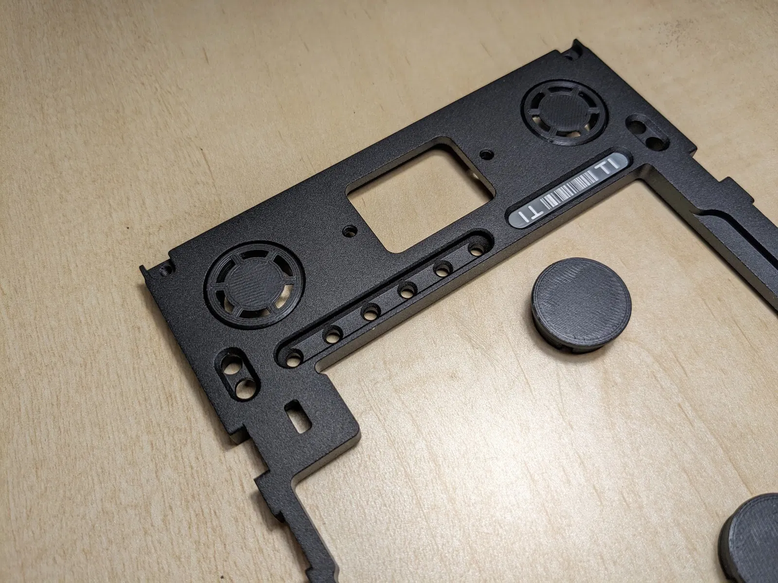 Đây là những nắp che được thiết kế để bịt các lỗ ở mặt sau của case FormD T1. Mình đã chuẩn bị hai mẫu thiết kế khác nhau.