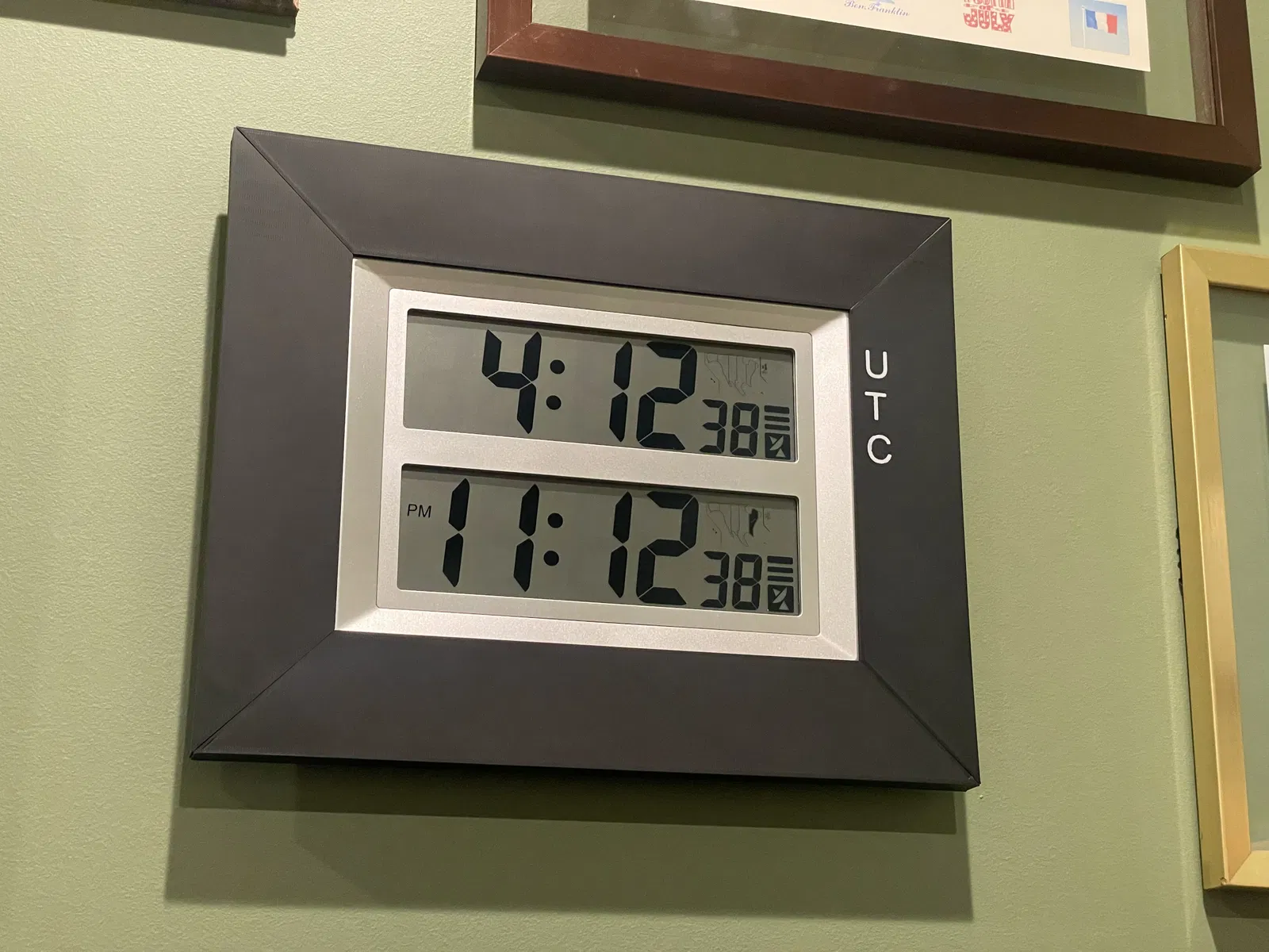 Có một nhãn UTC ở phía trên bên phải của khung đồng hồ để phân biệt dễ dàng các múi giờ.