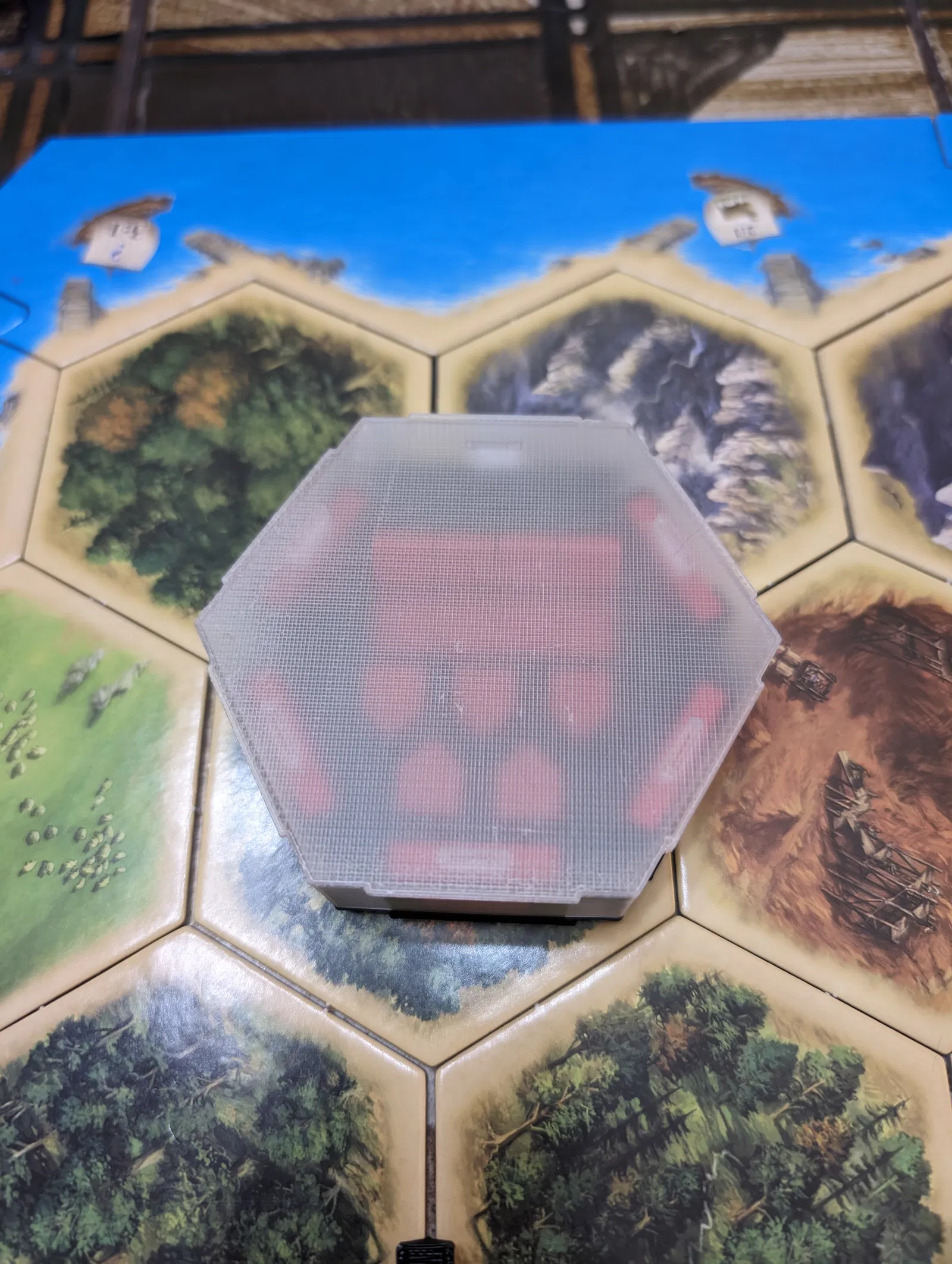 Hộp đựng/giá đỡ quân cờ Catan. In đơn giản, không cần support. Bạn có thể thêm chữ lên nắp bằng màu khác để thêm phần cá tính cho hộp đựng của mình nhé!